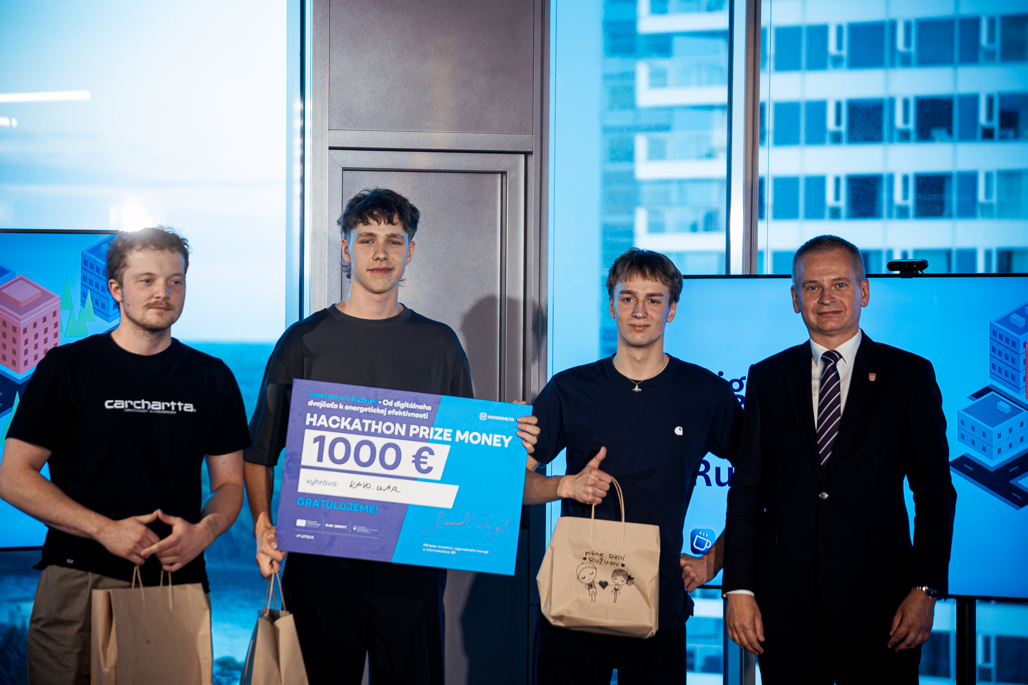 Cieľom Mestskej časti Bratislava-Ružinov, ako vlastníka témy hackathonu, bolo pomocou digitálneho dvojčaťa budovy miestneho úradu zvýšiť komfort pobytu občanov a zároveň optimalizovať spotrebu energie potrebnej na chod budovy. “Väčšina z nás, ktorí pôsobíme vo verejnej správe, fungujeme v približne 50-ročných budovách. Keď prídeme do moderných priestorov, v akých sme dnes, máme pocit, že by sme aj naše pracoviská radi niekam posunuli. Vízia Ružinova sa však netýka len budovy miestneho úradu. Ak nám tento projekt vyjde, chceli by sme ho aplikovať do každej jednej škôlky, domova dôchodcov, domu kultúry, skrátka do všetkých z asi 150 odberných energetických miest, ktoré patria pod našu správu,” vysvetlil plány MČ BA-Ružinov starosta Martin Chren.