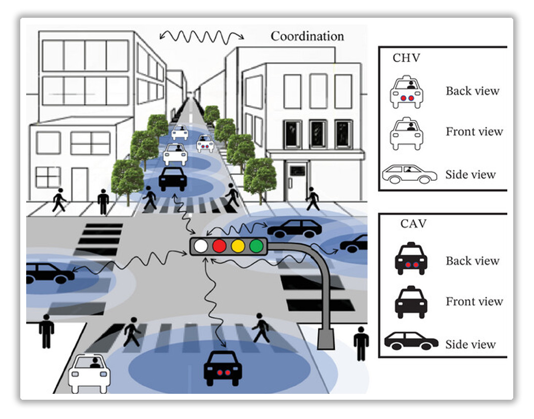 Biele svetlo by značilo, že pripojené vozidlá riadia dopravné toky a ľudskí vodiči by ich mali nasledovať. Výskum naznačuje výrazné zníženie celkového oneskorenia, skrátenie času jazdy a zníženie spotreby paliva pre všetky vozidlá na ceste. Aby sa však tento koncept stal realitou, musí existovať určité kritické množstvo autonómnych vozidiel a široko akceptovaný štandard komunikácie medzi autami.
