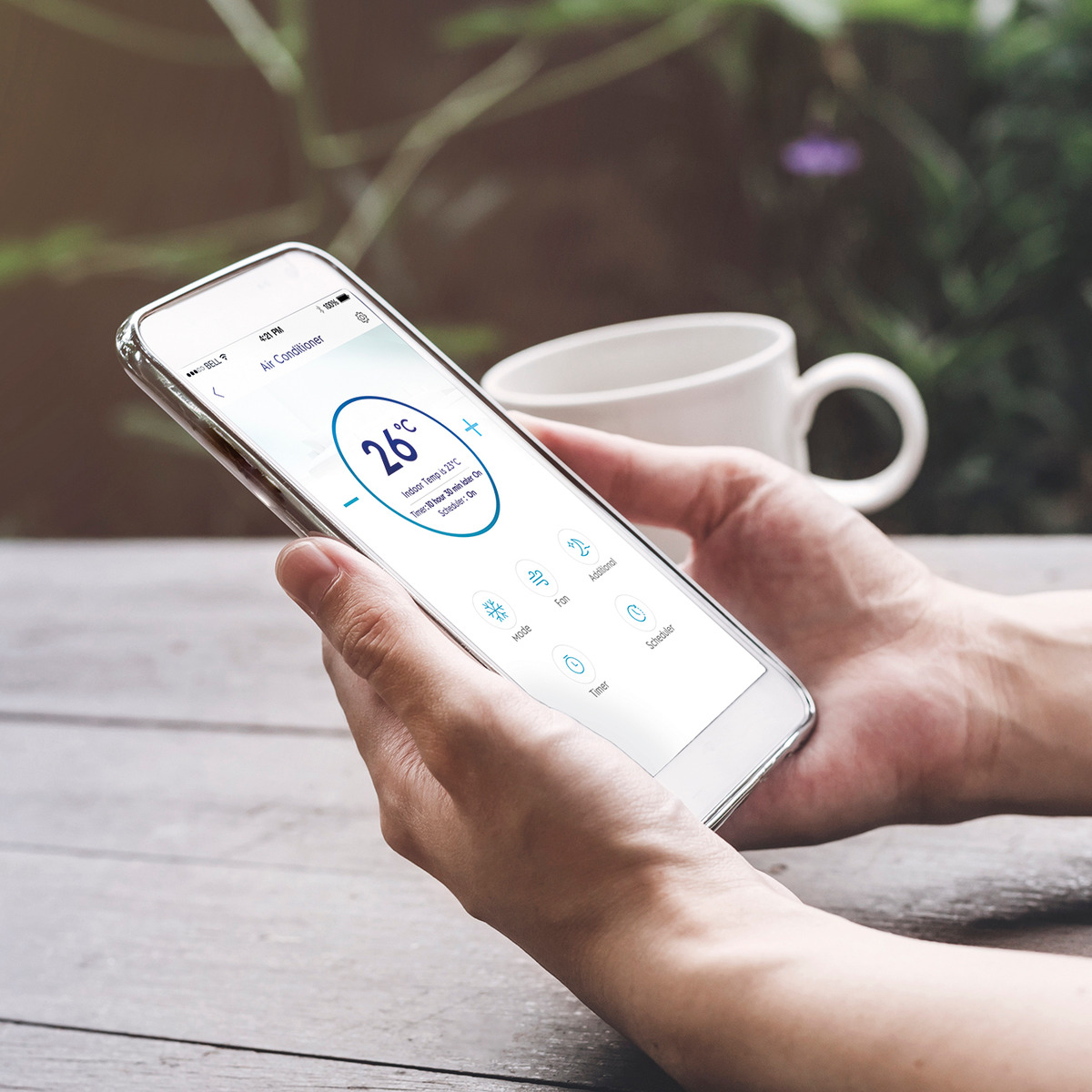 Na ovládanie slúži štýlový kruhový diaľkový ovládač s intuitívnymi ovládacími prvkami, preto ovládanie nebude robiť problém ani seniorom. Ovládač je magnetický, takže ho môžete upevniť napríklad navrch klimatizačnej jednotky, aby bol na očiach a vždy poruke. Klimatizáciu môžete ovládať aj na diaľku pomocou mobilnej aplikácie Electrolux Home Comfort. Hlučnosť závisí od otáčok ventilátora, ktoré sa dajú nastaviť na tri úrovne. Deklarovaná hodnota 65 dB je pomerne nízka a aj v spálni si ľahko na mierny hluk zvyknete.