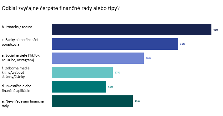 - najčastejším zdrojom informácií o nakladaní s peniazmi nie sú finančníci, ale priatelia a rodina