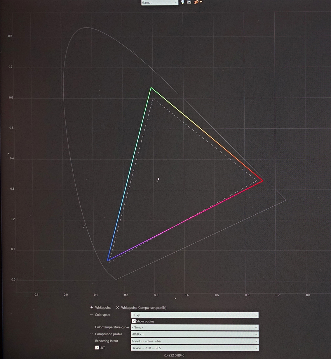 Výrobca udáva v technických parametroch 100 % pokrytie farebného priestoru sRGB/Rec.709. Tento údaj môžem potvrdiť. Monitor som dôkladne zmeral pomocou kolorimetrickej sondy Spyder 4 Elite.