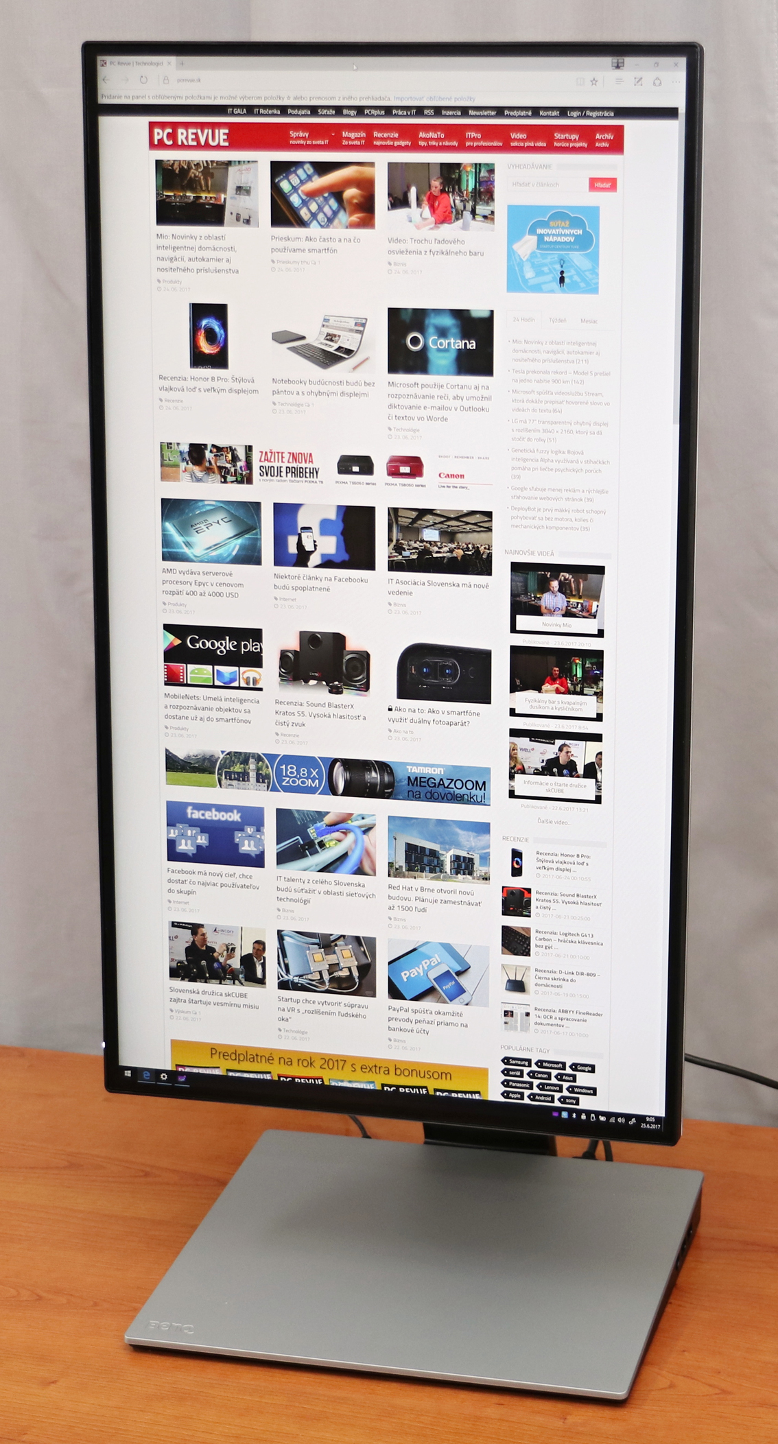 Panel displeja sa dá pootočiť o 90 stupňov, takže môžete pracovať v režime na výšku. Tento režim je pri danom rozlíšení natoľko návykový, že som ho používal veľmi často, predovšetkým na prehliadanie internetu a tvorbu či revíziu článkov.