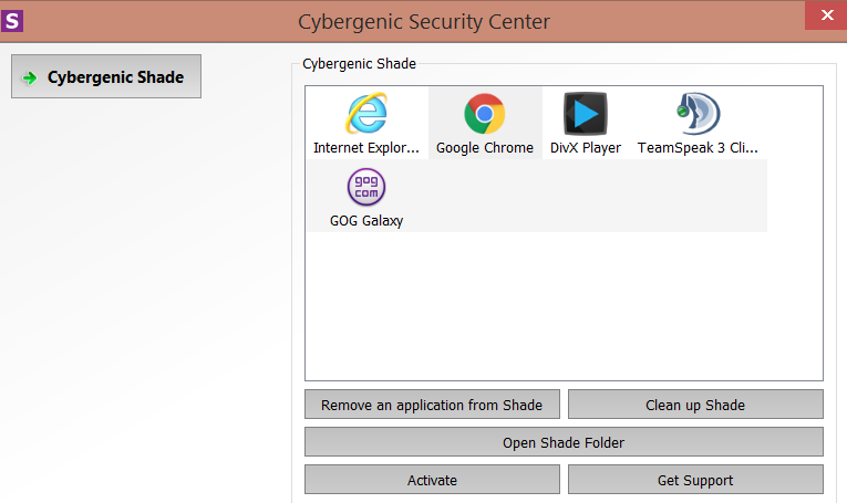 Pri inštalácii si program vyžiada e-mailovú adresu a meno na vygenerovanie bezplatného aktivačného kódu. Je to však nepovinné. Shade Sandbox má podobný prístup k riešeniu virtualizácie ako Sandboxie, rozdiel je vo väčšej prehľadnosti a jednoduchosti. Shade beží takisto na pozadí ako rezidentná služba. Prístup k jeho funkciám má používateľ pomocou ikonky na paneli úloh systému. Po jej rozkliknutí sa otvorí zoznam aplikácií, ktoré sa spúšťajú virtualizované. Do tohto zoznamu možno pridávať programy systémom drag & drop alebo ich odoberať jedným kliknutím. Aplikácie, ako je napríklad webový prehliadač, môžete používať naďalej bežným spôsobom, budú však spustené v izolovanom prostredí. Zoznam pojme iba spustiteľné súbory a odkazy na ne. Toto riešenie je vhodné aj pre používateľov, ktorí neexperimentujú s potenciálne nebezpečným softvérom, ale radi by z nejakého dôvodu izolovali svoju činnosť na PC. Informácie z prehliadača, ako sú cookies, história a dočasné súbory, totiž drží program oddelené. Súbory sťahované z internetu sa ukladajú do špeciálnej zložky s názvom Shade folder. Z funkčnej stránky sa program obmedzuje na čo najjednoduchšie použitie a neponúka žiadne možnosti nastavenia či prispôsobenia. Je preto vhodný pre začiatočníkov a nenáročných používateľov, ale aj pre vývojárov, ktorí potrebujú analyzovať správanie aplikácie bez vplyvu na OS. Spôsob fungovania zahŕňa aj ochranu pred škodlivým softvérom. Napríklad nebezpečné prílohy e-mailov neopustia izolované prostredie Shade, a preto je tento program vhodný aj na dlhodobé každodenné použitie.