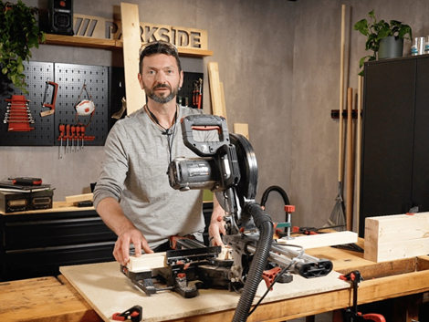 - Najprv narežte dosky na požadovanú dĺžku pomocou pokosovej píly PKS 1500 C3 od PARKSIDE. Hrany vyhladíte brúsnym papierom a ako finálnu úpravu nanesiete lazúru na drevo.