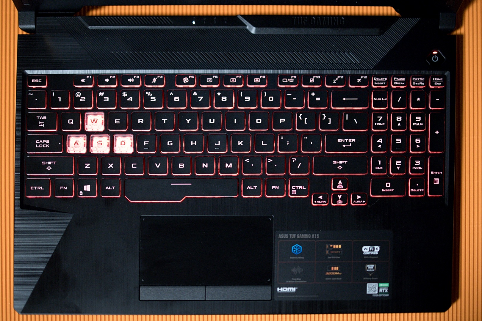 Typickým rozpoznávacím znakom tejto produktovej rodiny sú priesvitné „herné“ klávesy WASD a atraktívne tvarovaný medzerník. Samozrejme nechýba RGB podsvietenie kláves. Notebook má displej s frekvenciou až 240 Hz, 3 ms odozvou a podporou technológe Adaptive Sync. K dispozícii je tiež všestranný port Thunderbolt 4.