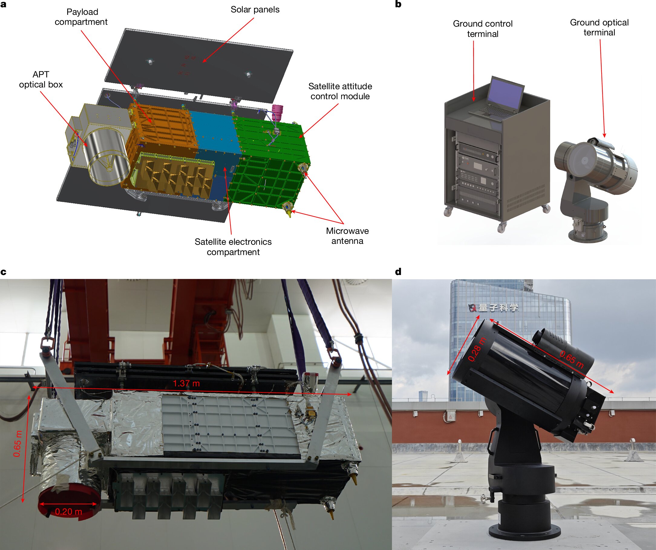 Výskumný tím zložený z vedcov z Čínskej univerzity vedy a techniky, Inštitútu kvantovej technológie v Šan-tungu, Šanghajského inštitútu technickej fyziky, Čínskej akadémie vied a Stellenboschskej univerzity v Južnej Afrike vyvinul prvý kvantový mikrosatelit na svete a demonštroval distribúciu kvantového kľúča (quantum key distribution – QKD) v reálnom čase medzi satelitom a viacerými kompaktnými mobilnými pozemnými stanicami.