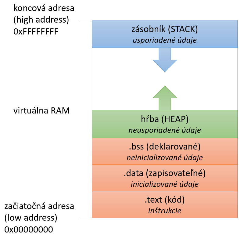 Obr. 2 Pamäťové bloky pridelené bežiacemu procesu