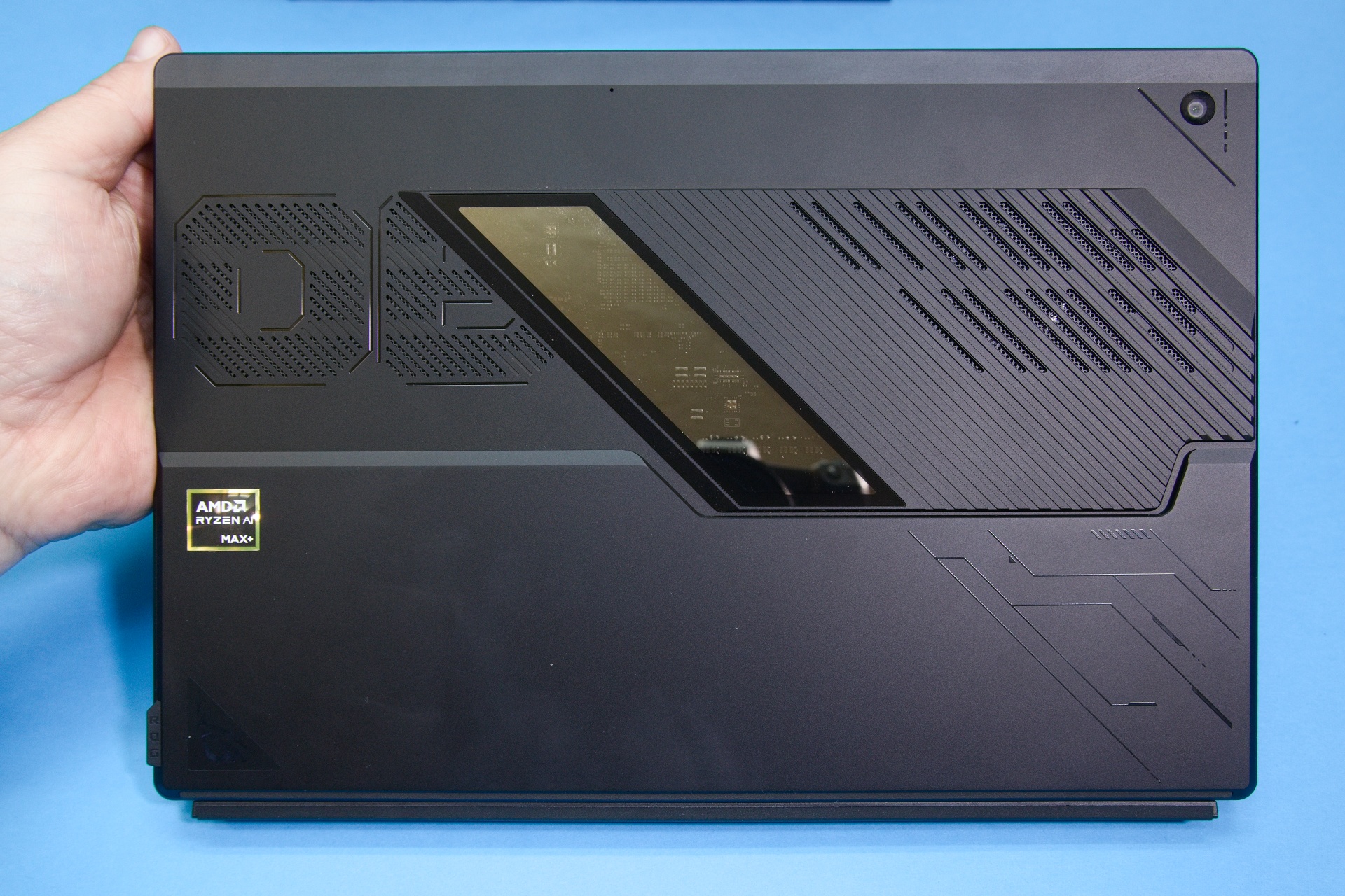Elektronickým srdcom zariadenia je 16-jadrový AMD Ryzen AI MAX+ 395 s 32 vláknami, ktorý v turbo režime dokáže krátky čas pracovať až na frekvencii 5,1 GHz. Vysokorýchlostná štvorkanálová RAM LPDDR5X-8000 sa podľa potreby prerozdeľuje medzi systémovú RAM a VRAM. Implicitne je grafike pridelená kapacita 4 GB. Reálny výkon čipovej súpravy závisí od účinnosti chladenia. Procesor má v závislosti od režimu a zaťaženia TDP 45 – 120 W, ktoré musí chladiaci systém rozptýliť. Pomáha nielen telo z ľahkej zliatiny s dobrou tepelnou vodivosťou, ale do značnej miery aj najčastejšie používaná zvislá poloha zariadenia počas prevádzky, ktorá umožňuje lepšie prúdenie tepla, než keď je klasický notebook položený na stole. Chladenie čipovej súpravy zabezpečuje antikorová parná komora. Nehrdzavejúca oceľ nevedie teplo tak dobre ako meď, takže zároveň funguje ako tepelný štít, ktorý chráni displej. Ventilátory Arc Flow Fans druhej generácie majú zakrivené lopatky špeciálne tvarované tak, aby maximalizovali prúdenie vzduchu s minimálnym hlukom. Disk SSD s kapacitou 1 TB má konštrukčný formát 2230 a je umiestnený pod odoberateľným krytom na zadnej stene, takže sa v prípade potreby dá vymeniť. Využil som to, keď som chcel túto zostavu vyskúšať s Linuxom. Stačilo vymeniť disk a nainštalovať nový systém. Windows na pôvodnom disku zostal v pôvodnom stave.
