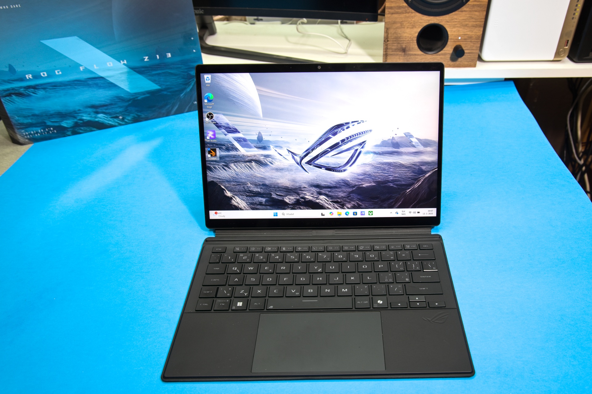 Rozmery zariadenia sú dané veľkosťou displeja Nebula s uhlopriečkou 13,4 palca. Keďže displej je dotykový, má hladký povrch, ktorý trochu odráža svetlé plochy. Trochu širšie rámiky okolo displeja sú pri tablete nevyhnutné, aby ste ho mohli držať v rukách – či už na výšku, alebo na šírku – bez toho, aby prsty v prirodzenej polohe zasahovali do aktívnej plochy dotykového displeja. Displej má rozlíšenie 2560 × 1600 pixelov, označované marketingovo ako 2.5K. Takéto rozlíšenie, samozrejme, kladie vysoké nároky na výkon grafickej karty, ale integrovaná 40-jadrová grafika Radeon 8060S taktovaná na 2900 MHz to v pohode zvláda.