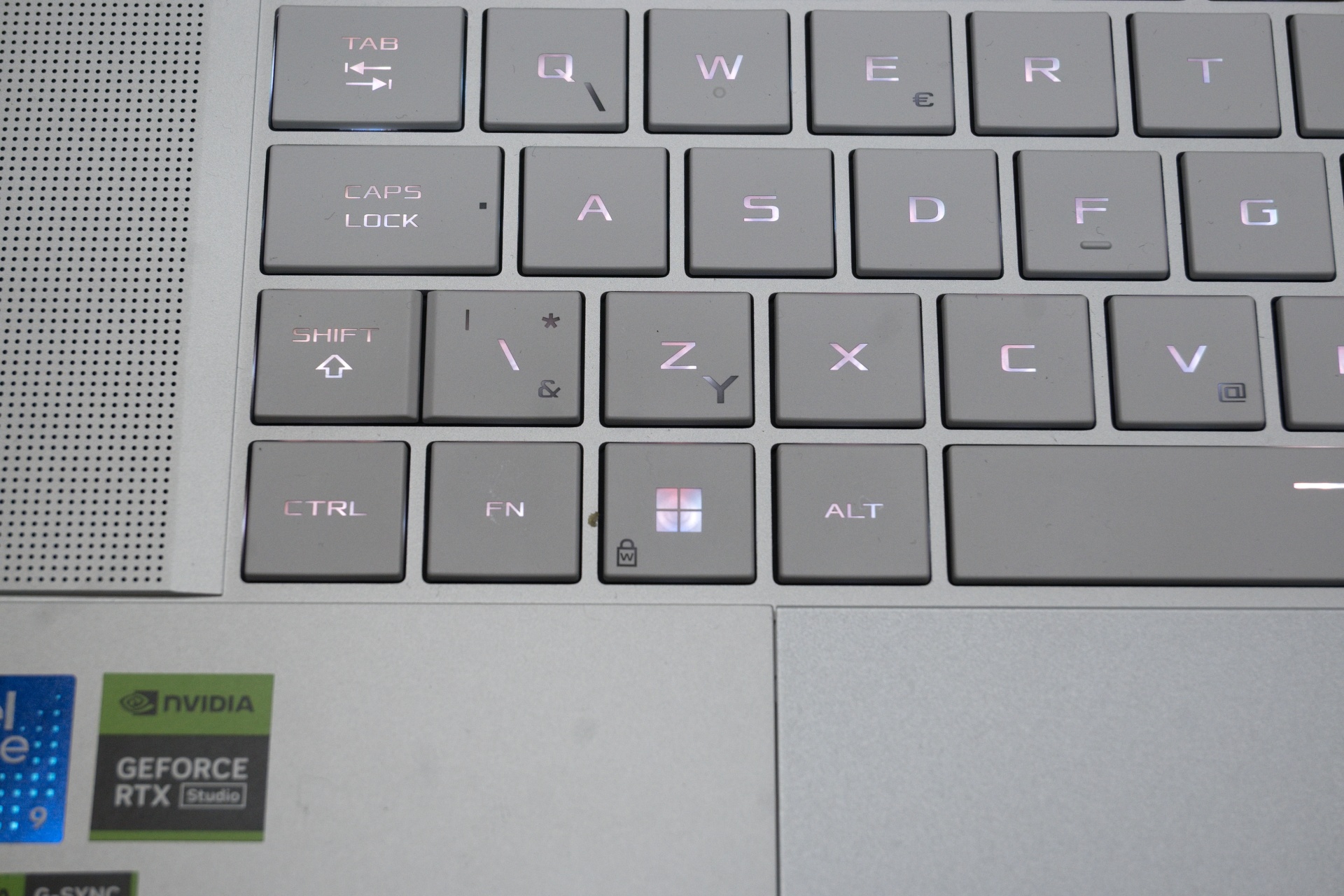 Rozmery notebooku sú dané veľkosťou displeja Nebula OLED, v tomto prípade s uhlopriečkou 16 palcov. Displej má rozlíšenie 2560 × 1600 pixelov, marketingovo označované ako 2,5K. Takéto rozlíšenie, samozrejme, kladie vysoké nároky na výkon grafickej karty, ale notebook je osadený NVIDIA GeForce RTX 4090 – najvýkonnejším grafickým čipom, aký je v súčasnosti k dispozícii so 16 GB GDDR6, takže zobrazovanie v pohode utiahne pri vysokej snímkovej frekvencii. Hráčov poteší vysoká obnovovacia frekvencia 240 Hz a latencia 0,2 ms, používateľov orientovaných na grafickú tvorbu a tvorbu videí a takisto nadšencov verného podania farieb pri sledovaní HDR obsahu zas 100 % pokrytie farebného priestoru DCI-P3, presnosť farieb delta E < 1 a certifikácia VESA HDR True Black 500, ktorú sa podarilo dosiahnuť vďaka jasu 500 nitov. Na reguláciu jasu sa využíva PWM na frekvencii 960 Hz, čo oko nemá šancu postrehnúť. Navyše nad 60 % sa využíva DC stmievanie na frekvencii 240 Hz. Okrem brilantných a verných farieb musím pochváliť pomer strán 16:10, takže displej poskytuje viac priestoru na výšku, čo oceníte pri práci s dokumentmi či surfovaní webom a aj pri väčšine hier. Displej má obnovovaciu frekvenciu 240 Hz a k plynulému zážitku z hier významne prispieva aj podpora technológií NVIDIA G-Sync a Advanced Optimus.