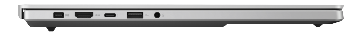 Celú zadnú stenu zaberajú výduchy horúceho vzduchu. Na ľavej strane je obdĺžnikový proprietárny konektor na pripojenie zdroja, konektor HDMI, USB-C Thunderbolt 4, port USB-A a kombinovaný 3,5 mm audiokonektor.