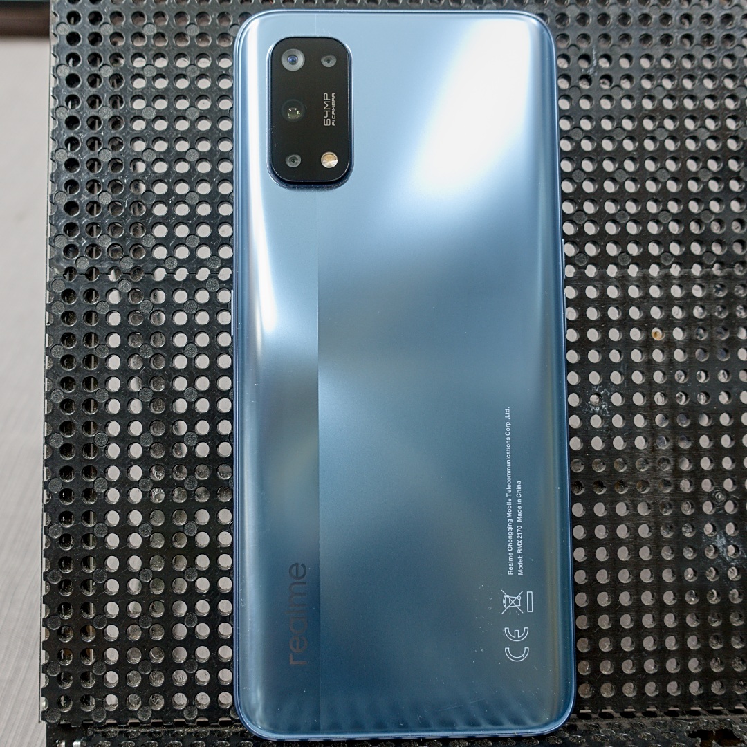 Dizajn je vďaka pásiku s inou povrchovou úpravou na ľavej strane zadnej steny originálny. Rozhranie povrchových úprav pomyslene prechádza stredom mierne vyčnievajúcej platformy s objektívmi a LED bleskom. Spolu so zvislo orientovaným nápisom „realme“ vás priam vyzýva aby ste smartfón otočili na šírku a vyskúšali fotiť a nakrúcať video. Inak povedané takto dizajnéri používateľovi naznačili, že má v ruke celkom dobrý fotomobil.