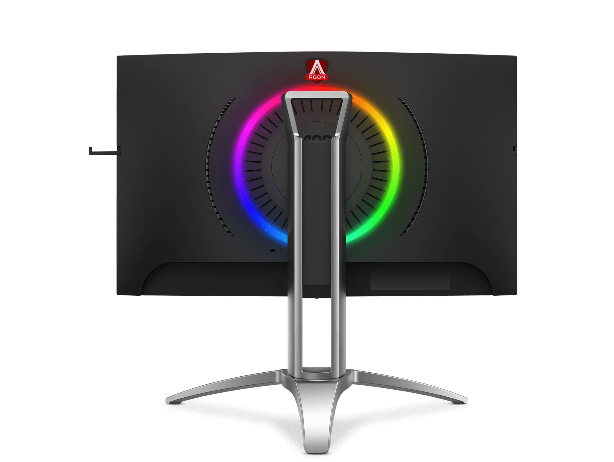Nová herná novinka od AOC je spracovaná v duchu minimalizmu. AOC tentoraz stavil na decentný dizajn s veľmi tenkými rámčekmi a čiernou dolnou lištou, ktorú zdobí iba nápis AGON v strede. Vo vypnutom stave vidíte iba jednoliatu polomatnú plochu. S ňou kontrastuje červený podstavec prechádzajúci do konzoly, ktorá má vo vrchnej časti praktický dizajnový otvor, slúžiaci na jednoduché prenášanie. Stojan umožňuje otáčanie, náklon aj sklon displeja, vzhľadom na zakrivený displej pivot nie je podporovaný. Monitor navyše umožňuje aj montáž na externý držiak vďaka podpore štandardu VESA 100. Aby si však prišli na svoje aj ortodoxní „gameri“, bez blikačiek by to nešlo. Zadná strana preto okolo uchytenia monitora nesie veľký kruh RGB LED, ktorý má nastaviteľné svetelné efekty. Musím uznať, že to celé vyzerá veľmi dobre a navodzuje luxusný dojem. Ten je navyše umocnený kvalitnou konštrukciou, ktorá je síce celoplastová, ale má vnútri kovové výstuhy. Konštrukcia je tak pevná a nikde nič nevŕzga ani sa nekníše. Nájdenie ovládania je malý IQ test. Po chvíli šmátrania som nakoniec narazil na spodnej strane na 5-smerový joystick, umiestnený v strede, ktorým sa ovládajú všetky funkcie cez futuristicky pojaté menu.