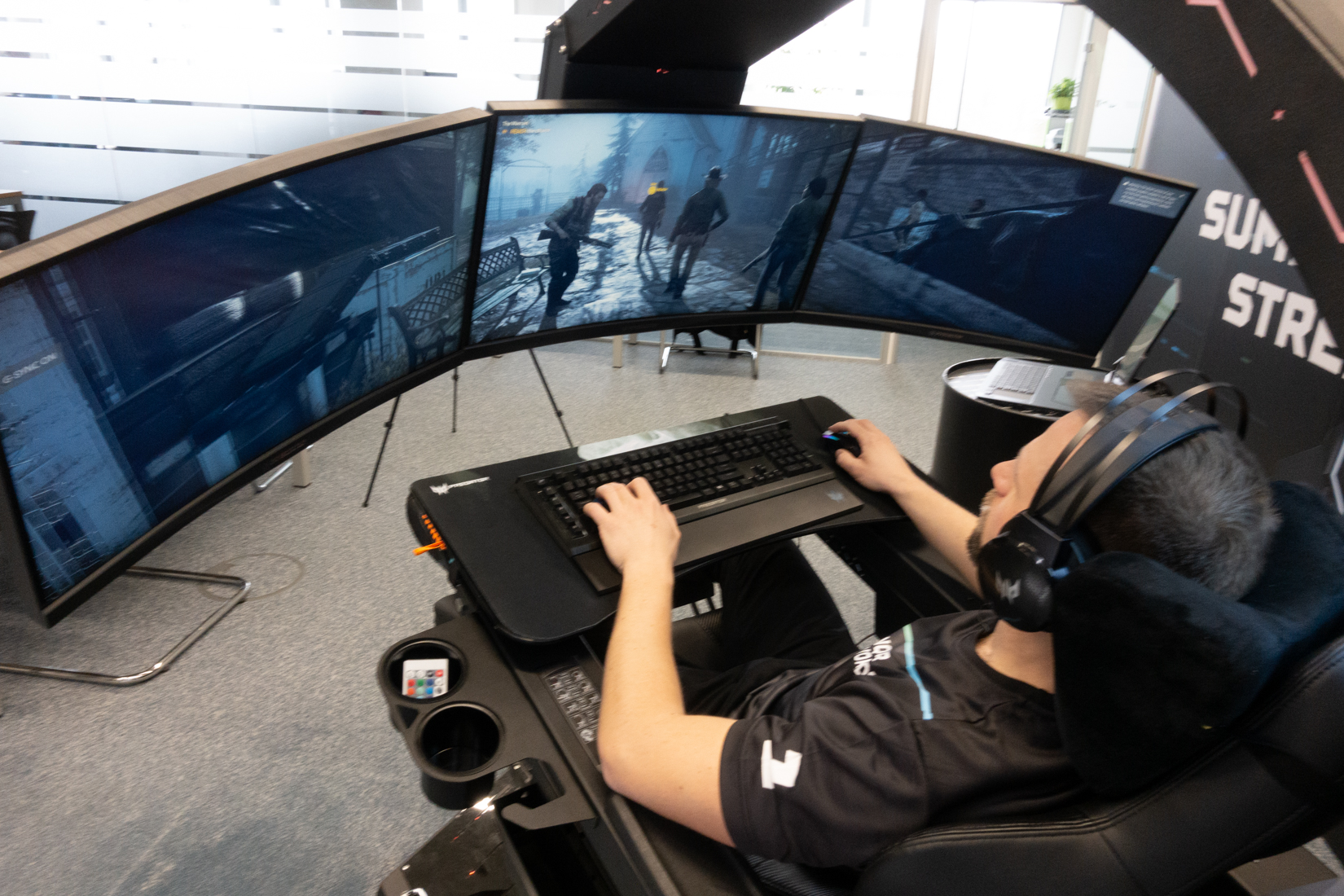 Na reprodukciu zvuku počas hry sa využívajú slúchadlá. Trojica zaoblených monitorov vytvára pred hráčom takmer 140° panorámu s celkovým rozlíšením 7680 × 1440. Panel monitorov zároveň hráča oddelí od zvyšku miestnosti, takže sa ocitne v pomyselnej jaskyni, v ktorej ho nič nebude rušiť a môže sa naplno sústrediť na hranie.