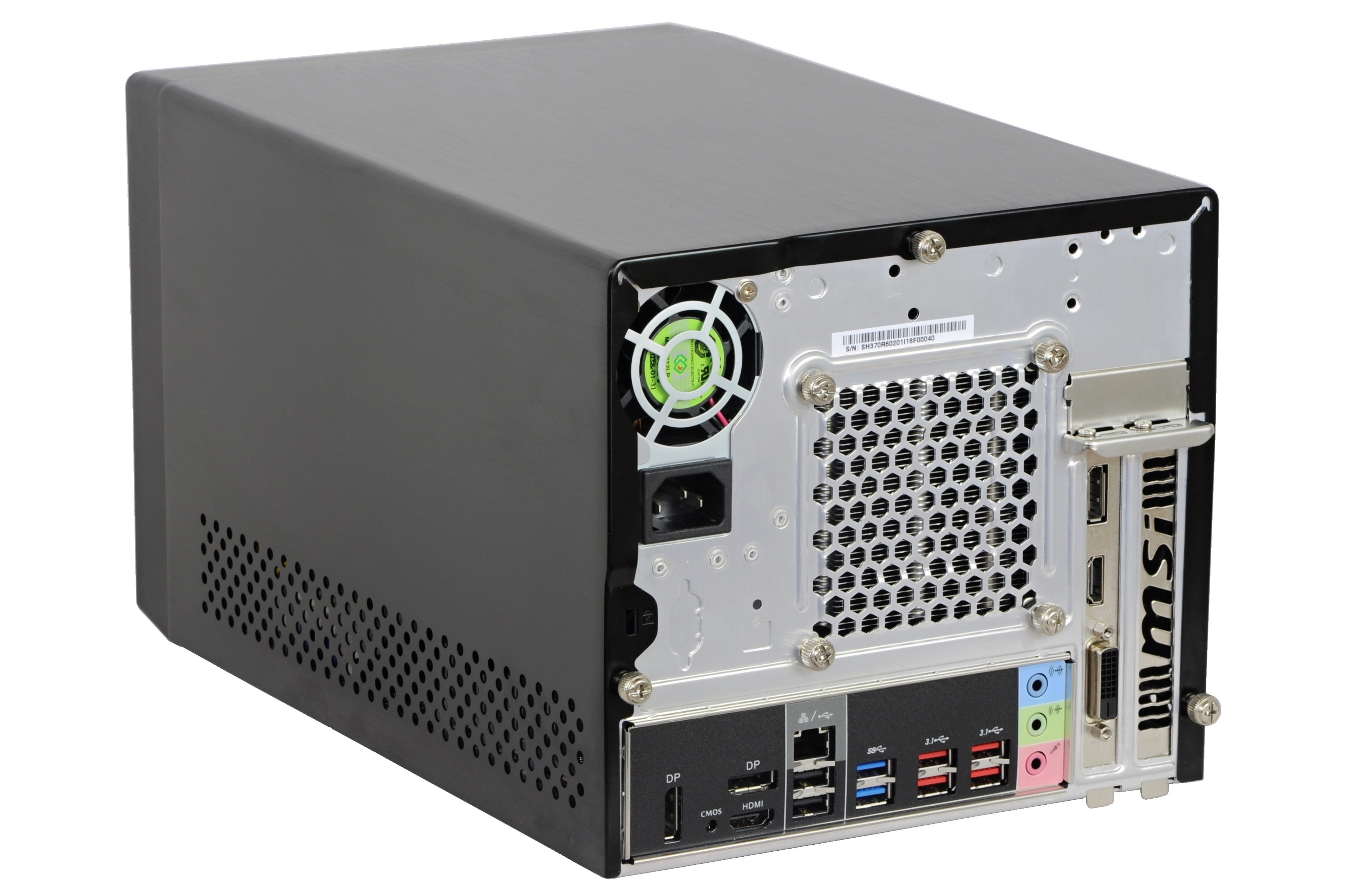 Formátovanie skrinky je podľa pôvodnej predlohy, ktorá charakterizovala tento typ počítačov od začiatku. To znamená, že čelný panel má blízko štvorcu (213 × 188 mm) a najväčší rozmer je do hĺbky (335 mm). A ono to ani oveľa elegantnejšie navrhnúť nejde, ak má byť podporovaná tradičná optická mechanika, stále užitočná na archiváciu rodinných videí z dovolenky a podobne. A nechýba ani šachta na 3,5" čítačku, ktorá k multimediálnemu počítaču takisto patrí. Namiesto nej môžete osadiť druhý 3,5" HDD. Nakoniec predok ponúka štyri porty USB (2× 3.1 gen 2 a 2× 2.0) a dva konektory na 3,5 mm jacky. Každý z týchto segmentov (na mechaniku, čítačku a konektory) má dobre fungujúce dvierka, vďaka čomu pôsobí lesklá maska s vodorovným vrúbkovaním decentne.