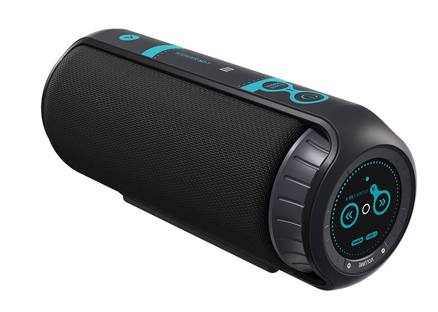 Rozmery: 78 x 75 x 190 mm, hmotnosť: 560 g; 360° zvuk; batéria 4 000 mAh; vodoodolnosť IPX4; konektivita: 3,5 mm jack, Bluetooth 4.1, NFC