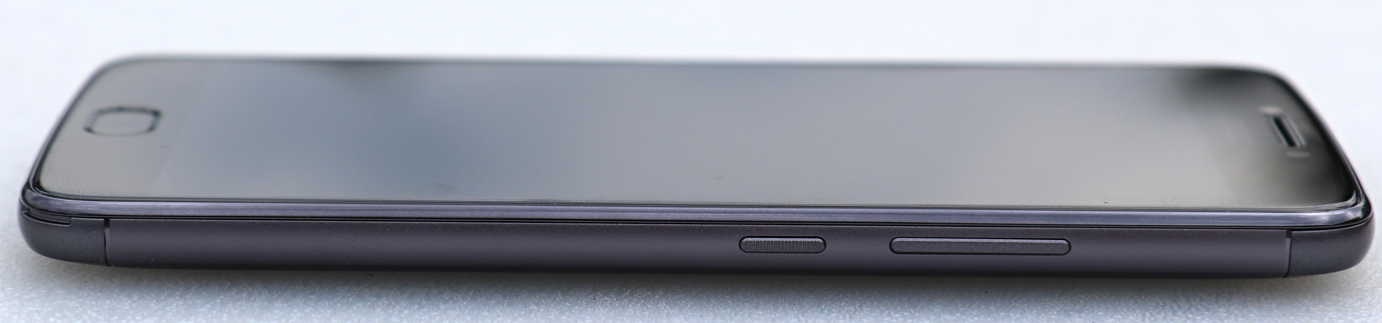 Rozlíšenie HD je v tejto cenovej triede v poriadku, pixelová štruktúra nie je viditeľná, a keď takéto rozlíšenie vyhovuje pre 15-palcový lacný notebook, prečo by malo prekážať pri 5,5-palcovom smartfóne. V prakticky využiteľnom rozsahu uhlov nedochádza ku skresľovaniu farieb. Displej je dobre podsvietený a dá sa z neho čítať aj na priamom slnečnom svetle. Okraje krycieho skla, ktoré s výnimkou plochy snímača odtlačkov pokrýva celú prednú stenu, sú jemne zaoblené v súlade s trendom 2,5 D. Sklo cez lesklý plastový rámik plynulo nadväzuje na zaoblené bočné hrany, vďaka čomu sa telefón aj napriek väčším rozmerom dobre drží v ruke. Oválny tvar snímača odtlačkov prstov naznačuje, že pomocou tejto dotykovej plochy môžete ovládať funkcie troch androidových tlačidiel. Krátkym ťuknutím zobrazíte domovskú obrazovku, potiahnutím prsta doprava zobrazíte naposledy spustené aplikácie a gestom doľava sa vrátite späť. Dlhším pridržaním plochy telefón zamknete. Zdôrazňujem, že snímač odtlačkov v tejto kvalite je v nižšej strednej triede skôr výnimka než pravidlo.