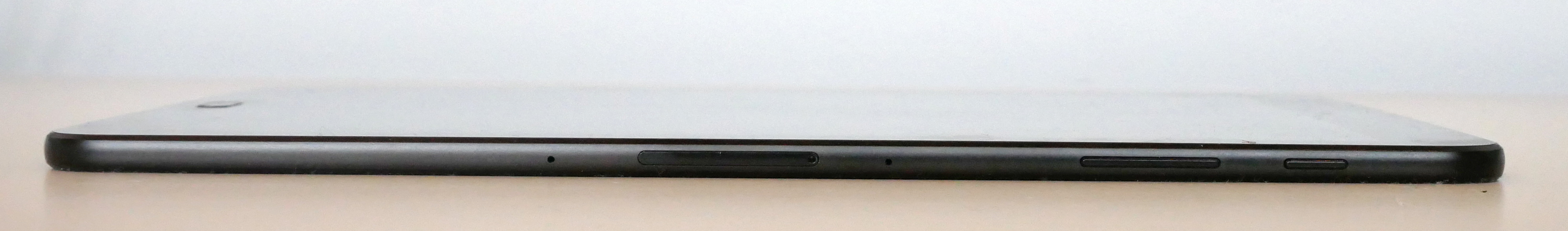 Už na prvý pohľad je zrejmý pokus o unifikáciu dizajnu, prezrádzajú to hlavne dve dotykové podsvietené Android tlačidlá umiestnené po stranách oválneho snímača odtlačkov prstov, či zaoblené rohy. Tlačidlo zo snímačom nepatrne vyčnieva nad povrch krycieho skla, takže sa ľahko nahmatá, no občas sa môže napríklad v aktovke neúmyselne aktivovať. Odozva snímača je rýchla, no nie vždy je odtlačok spoľahlivo rozpoznaný. Podľa orientácie loga aj usporiadania tlačidiel sa predpokladá používanie v režime na výšku, no na ľavej strane sú pozlátené kontakty a vodiace plochy na pripojenie klávesnice, ktorá však nie je súčasťou dodávky. Vľavo okrem tlačidla na uspatie/prebudenie a kolískového tlačidla na reguláciu hlasitosti nájdete kombinovaný slot na SIM a micro SD kartu.