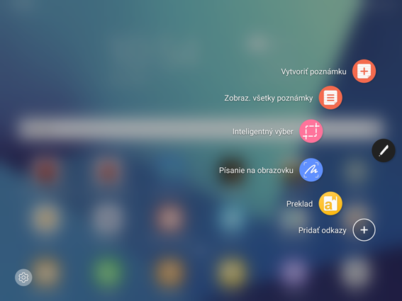Operatívna ponuka funkcií pre dotykové pero