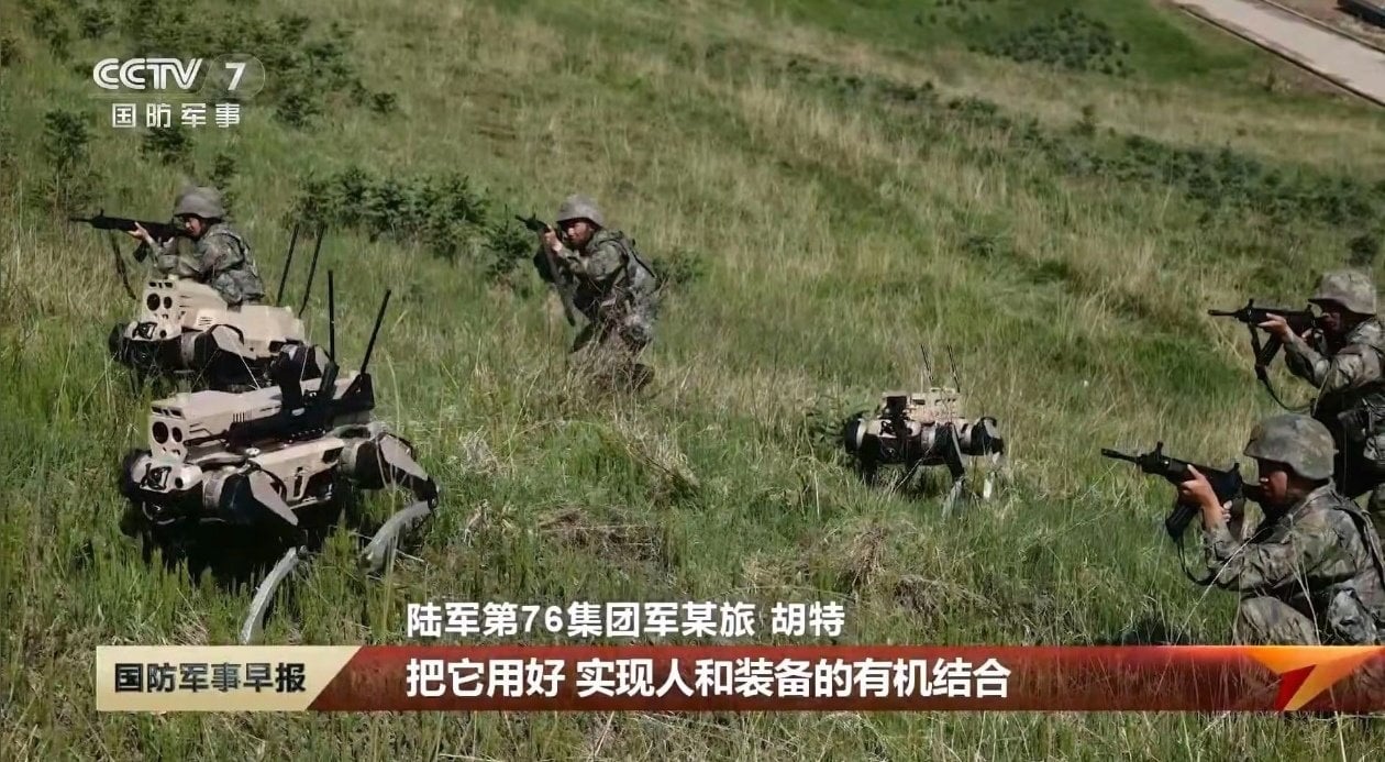 Štátna televízia CCTV-7 ukázala cvičenie 76. armádneho zboru Ľudovej oslobodzovacej armády, kde štyri „mechanické psy“ s nasadenými útočnými puškami postupovali s pechotou cez kopcovitý terén a poskytovali kryciu paľbu. Zábery pochádzajú zo severu Číny neďaleko ruskej hranice a dopĺňali ich malé prieskumné drony, ktoré prenášali obraz a ciele k jednotkám na zemi.
