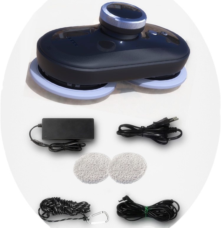 Na rozdiel od robotického vysávača je čistič okien, ktorý sa musí šplhať po hladkých zvislých limitovaný hmotnosťou, takže nemôže mať batériu s dostatočnou kapacitou na prácu. Napája sa zo sieťového adaptéra, pričom konektor sa zaisťuje proti náhodnému vytiahnutiu. Má len malú záložnú batériu, aby v prípade ak dôjde k výpadku napájania hneď nespadol a poskytol obsluhe čas, aby ho bezpečne odobrala z okna. Kapacita batérie by mala vystačiť na 30 minút. Po výpadku sieťového napätia prístroj nepokračuje v čistení, zostáva prisatý na jednom mieste. V balení nájdete aj lanko s karabínkou pomocou ktorého prístroj zabezpečíte proti pádu z výšky tak, že druhý koniec uviažete v miestnosti o nejaký pevný predmet, napríklad radiátor. Je to nevyhnutné pri umývaní vonkajších skiel okien. V prípade nehody potom robotický čistič zostane visieť na lanku. Pri čistení okien, ktoré sa dajú otvoriť dovnútra lanko nepotrebujete, pretože vtedy by čistič spadol do miestnosti na podlahu, čo jeho konštrukcia bez problémov vydrží. Podtlak, ktorý drží čistič na skle, či inej ploche je pomerne silný, takže za bežných okolností z okna nespadne, dokonca ani vtedy nie ak čistíte vyklápacie okno a vyklopíte ho dovnútra, takže čistič je mierne „dole hlavou“.
