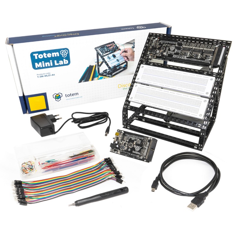 Stavebnica Totem Minilab obsahuje aj dosku elektroniky a prepojovacie pole.