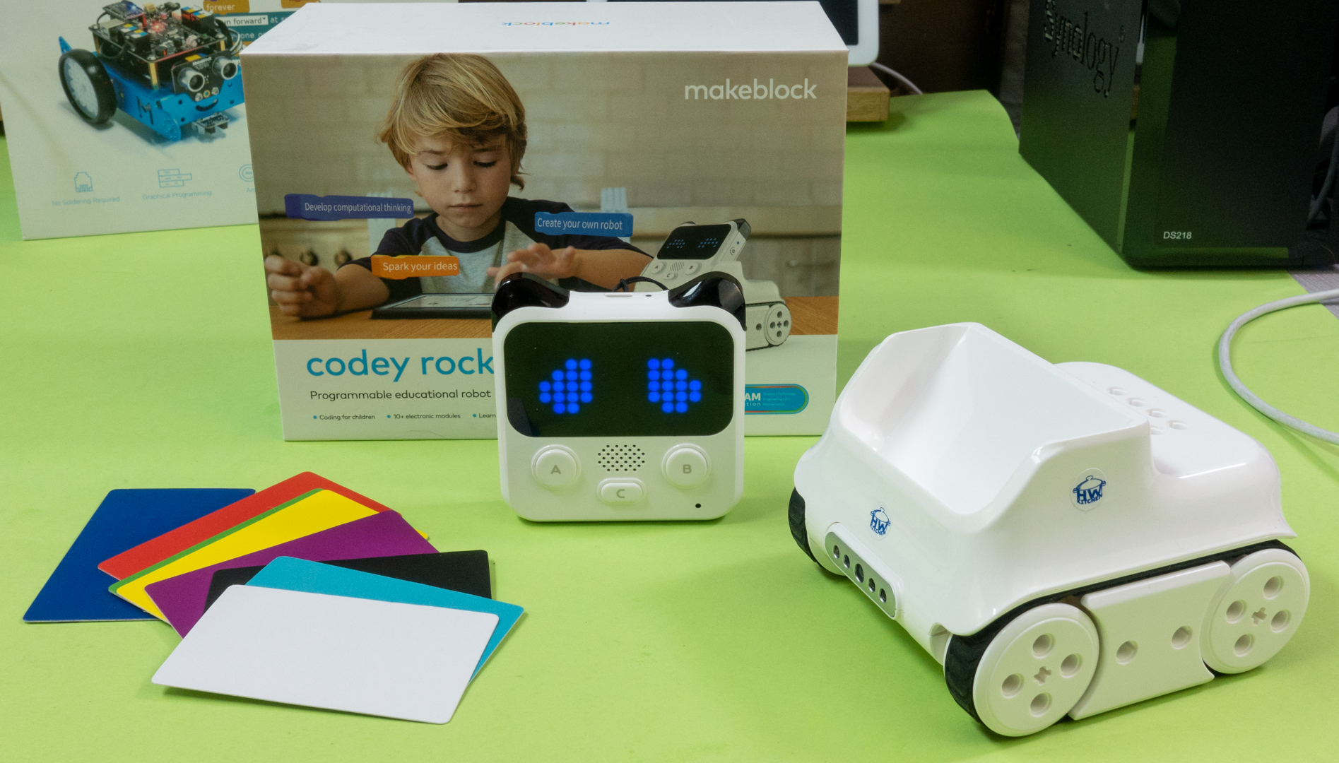 Nielen humanoidné roboty, ale aj robotické podvozky sa podľa dizajnu a konštrukcie vo všeobecnosti delia na technokratické a prívetivé. Tento princíp si osvojil aj výrobca Makeblock. Vyprofilovaným záujemcom o robotiku a programovanie ponúka robotický podvozok mBot s technokratickým dizajnom a pre tých čo sa primárne chcú len hrať s roboticku hračkou má robota Codey Rocky. Skladá sa z dvoch častí: pásového podvozku a modulu riadiacej jednotky. Po zasunutí riadiacej jednotky do slotu v prednej časti podvozku vznikne kompaktný robot vzhľadom vzdialene pripomínajúcim zvieratko. Tento dojem navodzujú „ušká“ na riadiacej jednotke a maticový displej umiestnený tak, že sa priam ponúka zobraziť na ňom oči.