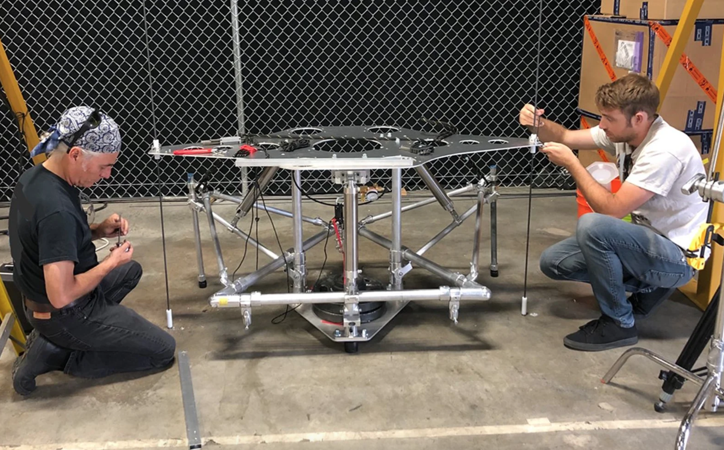 Tím predviedol malého robota so štyrmi potrubnými ventilátormi, ktorý dokáže odolať menším pádom a udržať si stabilitu. Testovali aj väčšieho robota vybaveného nohami zo stlačiteľnej peny a potrubnými ventilátormi, ktorý je schopný prežiť pád z výšky až 65 metrov.
