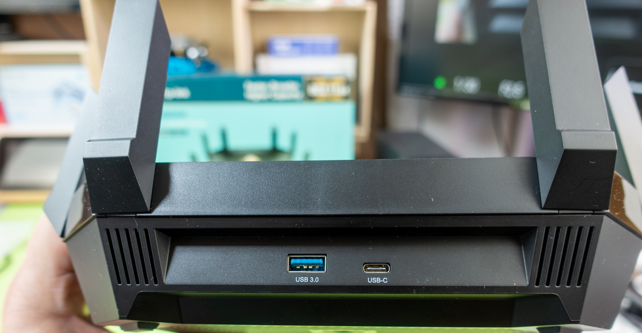 Momentálne v domácnosti využívam internetové pripojenie cez ADSL takže v teste som sa zameral na prenosovú rýchlosť medzi zariadeniami v domácnosti a dvomi NAS servermi Synology. Jeden využívame na ukladanie a zdieľanie multimediálnych súborov vrátane filmov a videí v rozlíšení 4K a druhý na ukladanie dokumentov, fotografií v RAW formáte a nakrútených klipov, väčšinou v 4K rozlíšení. Router je vybavený ôsmimi gigabitovými portmi siete Ethernet, jedným WAN portom s rýchlosťou 2,5 Gbit/s a dvoma portmi USB 3.0 typu A a typu C. NAS servery som pripojil k routru ethernetovým káblom a k portu USB 3.0 typu A som pripojil externý disk WD Passport s kapacitou 5GB, ktorý som nakonfiguroval ako zálohovací TimeMachine disk pre Apple zariadenia. Tri televízory a 4K Blu-Ray prehrávač, ktoré mám inak pripojené cez Ethernetový kábel k niektorej z dvoch jednotiek mesh routra som pripojil cez WiFi. Zhodou okolností som mal k dispozícii iPhone 11 Pro, ktorý podporuje aj štandard 802.11ax.