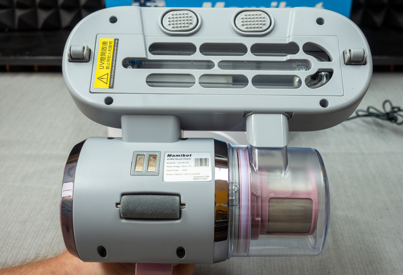 Do zbernej nádoby sa preto väčšina mikroorganizmov dostane už usmrtených. Jednoduchým pokusom som sa presvedčil, že usmrcovanie roztočov a mikroorganizmov je skutočne účinné. Bežným, dobre vyčisteným vysávačom som povysával polovičku poťahov sedacích súprav a polovičku matracov. Druhé polovice som povysával vysávačom Mamibot UV Lite 100 s UV lampou. Prach som dal do dvoch uzavretých plastových nádobiek, čím som simuloval situáciu, keď po vysávaní zostane prach v zásobníku. O tri dni som nádobky otvoril. V nádobke s prachom, ktorý prešiel cez UV lampu nebol prakticky žiadny zápach, zatiaľ čo zápach produktov metabolizmu roztočov v porovnávacej nádobke bol citeľný. Ultrafialové žiarenie má veľmi výrazné sterilizačné účinky, avšak je škodlivé pre ľudský organizmus, predovšetkým pre oči. Preto má vysávač ochranný mechanizmus, ktorý aktivuje UV výbojku iba vtedy ak je nasávacia časť pritlačená na rovný povrch a UV lúče nemôžu preniknúť do okolia. Ak vysávač nadvihnete, alebo nakloníte, výbojka sa okamžite vypne. Vysávač má aj kontrolku, ktorá signalizuje, že UV lampa je práve aktívna.