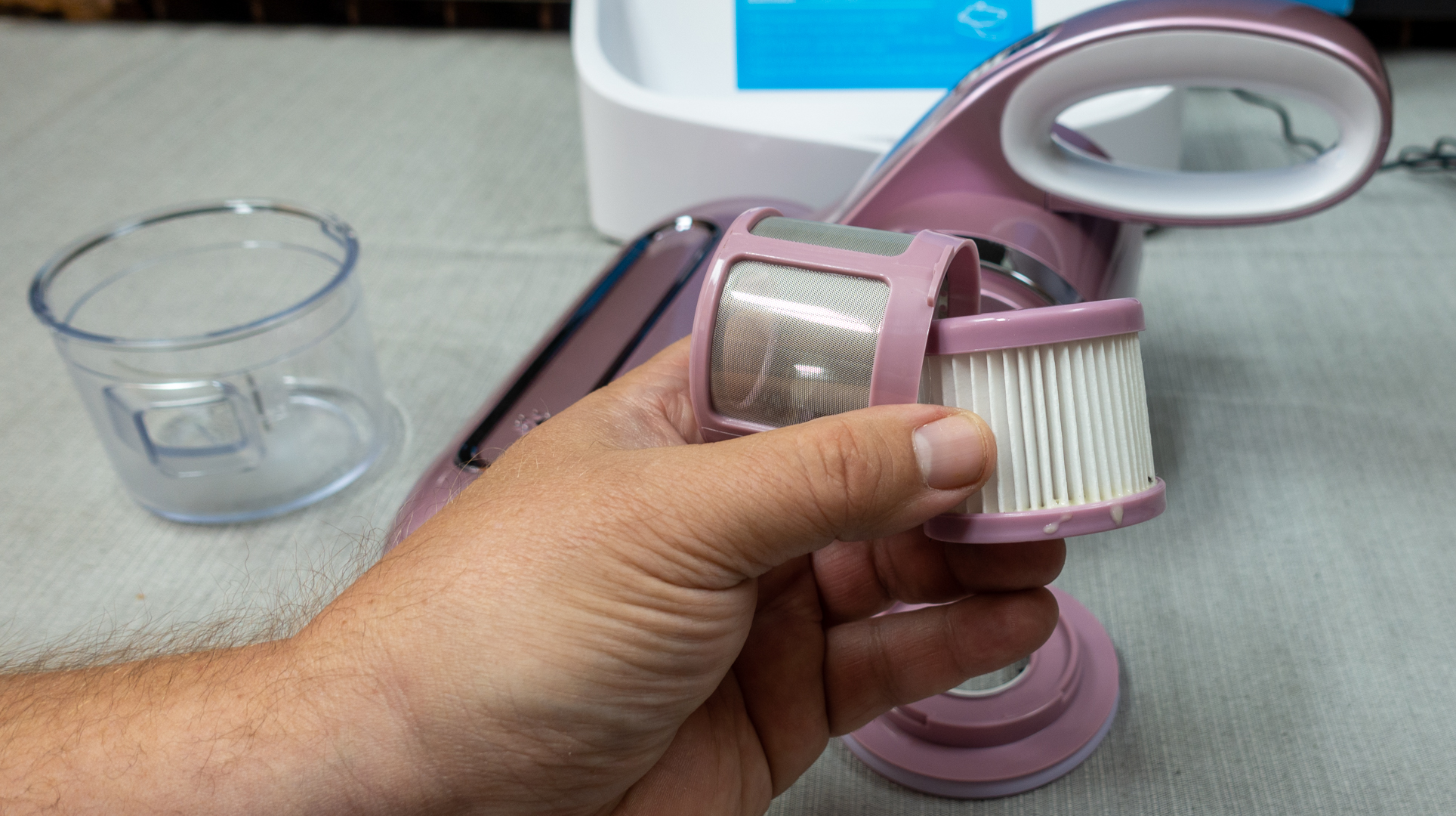 Nasávaný prach prechádza cez účinnú trojstupňovú filtráciu, vrátane HEPA filtra. Nádobka na odpad má objem 0,5 litra.