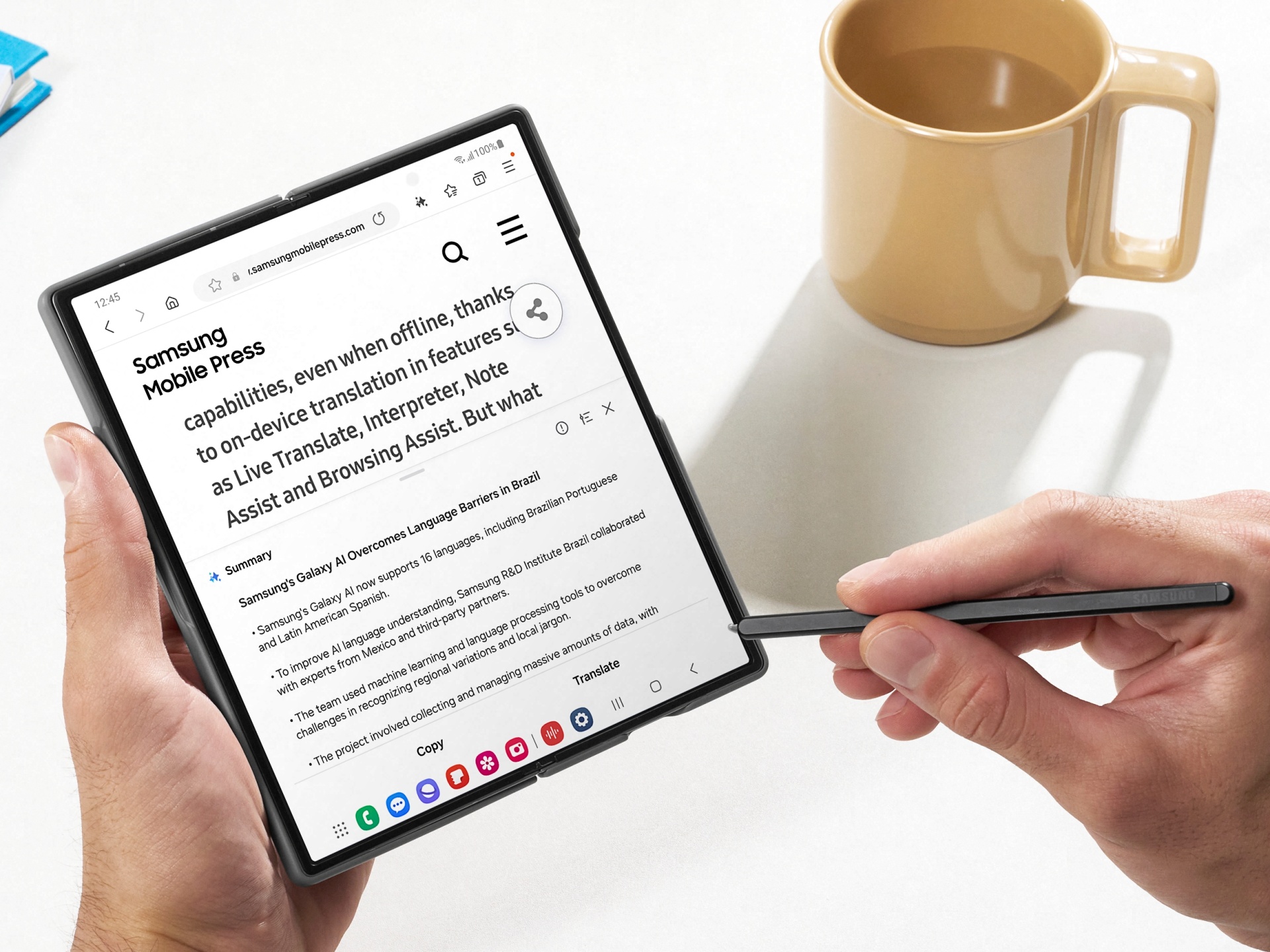 Galaxy AI v Z Fold6 vylepšila aj bezbariérovú komunikáciu. Funkcia Tlmočník je vybavená novým režimom konverzácie, ktorý plne využíva unikátnu konštrukciu telefónu umožňujúcu komunikujúcim osobám pohodlne sledovať preklady na hlavnom aj vonkajšom displeji a zaistiť tak ich prirodzenejšiu interakciu. Ponúka aj jednosmerný preklad, takže môžete ľahko porozumieť obsahu prednášok alebo iných typov prezentácií. Funkcia Simultánny preklad, ktorá prekladá telefónne hovory v reálnom čase priamo v zariadení, sa teraz rozširuje mimo vlastnej aplikácie Samsung na telefonovanie aj do niektorých obľúbených aplikácií tretích strán.