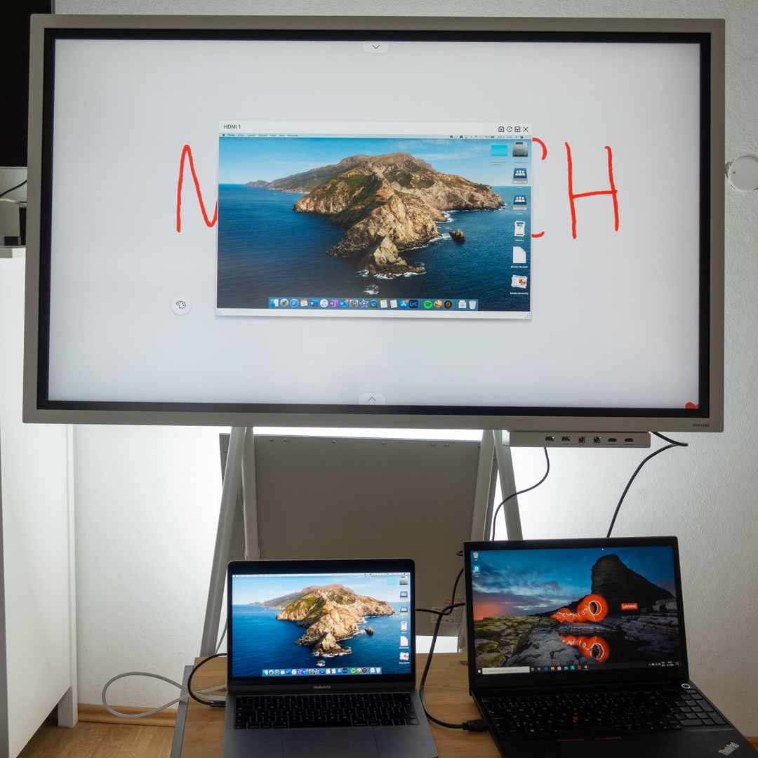 Pri recenzii sa nezaobídem bez porovnania s klasickým papierovým flipchartom a tu je prvá analógia. Pri písaní, aj kreslení niektorých typov schém, či náčrtov je vhodnejšia orientácia na výšku. Na rozdiel od papierových hárkov, ktoré sa obvykle na konci porady, či lekcie prácne fotia a rozposielajú zainteresovaným, elektronická tabuľa umožňuje pohodlné zdieľanie obsahu na niekoľko ťuknutí na dotykovú obrazovku. Vo veľkej zasadačke, či posluchárni je možné premietať aktuálny obsah tabule na projektor, či veľkoplošnú obrazovku buď pomocou Wi-Fi siete alebo HDMI pripojenia.