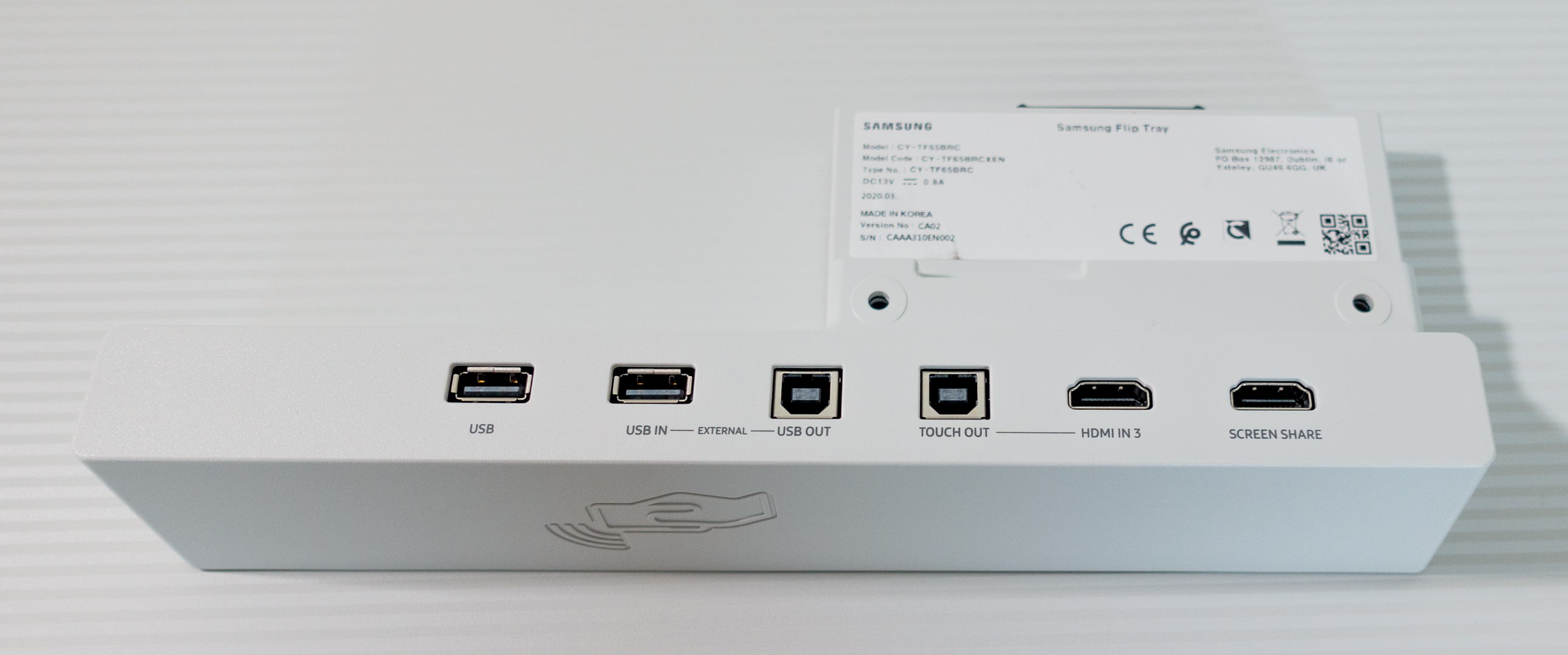 Ako voliteľné príslušenstvo, prípadne u niektorých predajcov ako súčasť cenovo zvýhodneného balíka je k dispozícii rozširujúci modul Flip2 Tray. Upevňuje sa vpravo na širšiu stranu zobrazovacieho panelu. Modul má ďalšie pripojovacie konektory – 2 x USB, pričom jeden port je určený na pripojenie k počítaču s Windows, aby sa používateľské rozhranie operačného systému a aplikácií dalo ovládať cez dotykový panel tabule, je tu aj ďalší HDMI vstup na operatívne pripojenie zariadení, HDMI výstup na zdieľanie obrazovky a je tu aj označená plocha na NFC pripojenie. Je to veľmi praktické, stačí priložiť smartfón a môžete na tabuli zdieľať obsah jeho obrazovky.