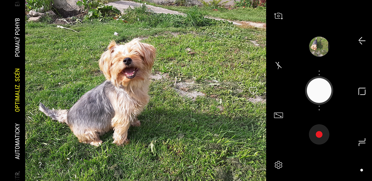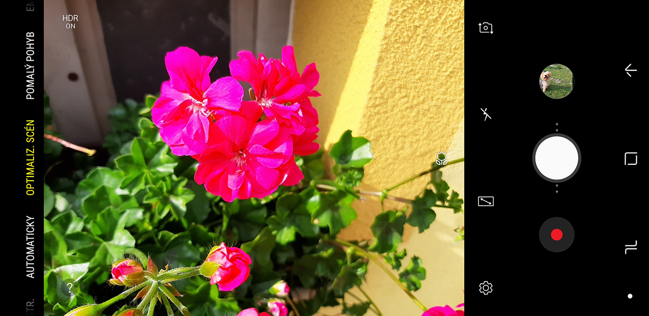 Umelá inteligencia v režime rozpoznania scén – všimnite si ikonku na obraze vpravo v strede