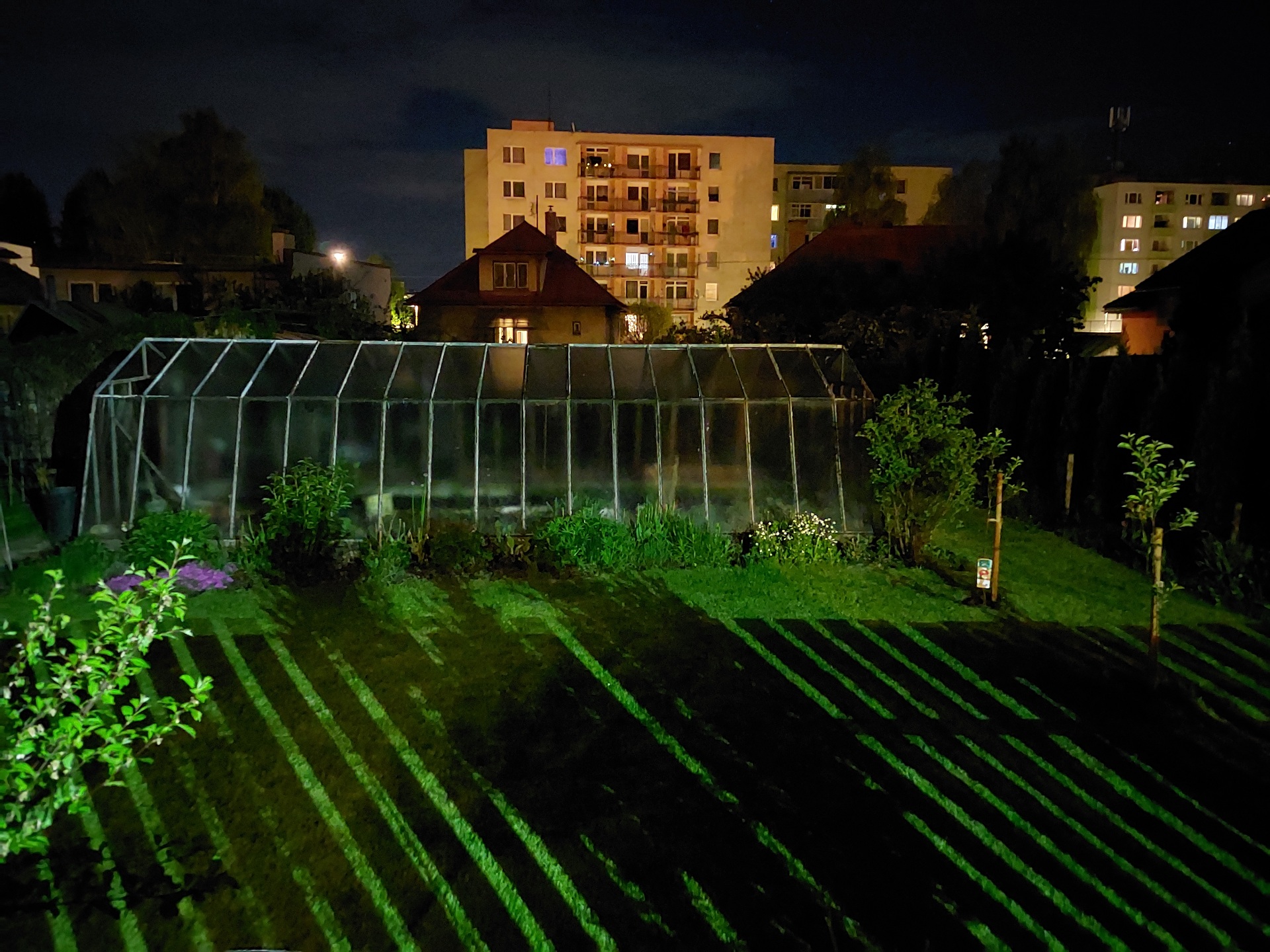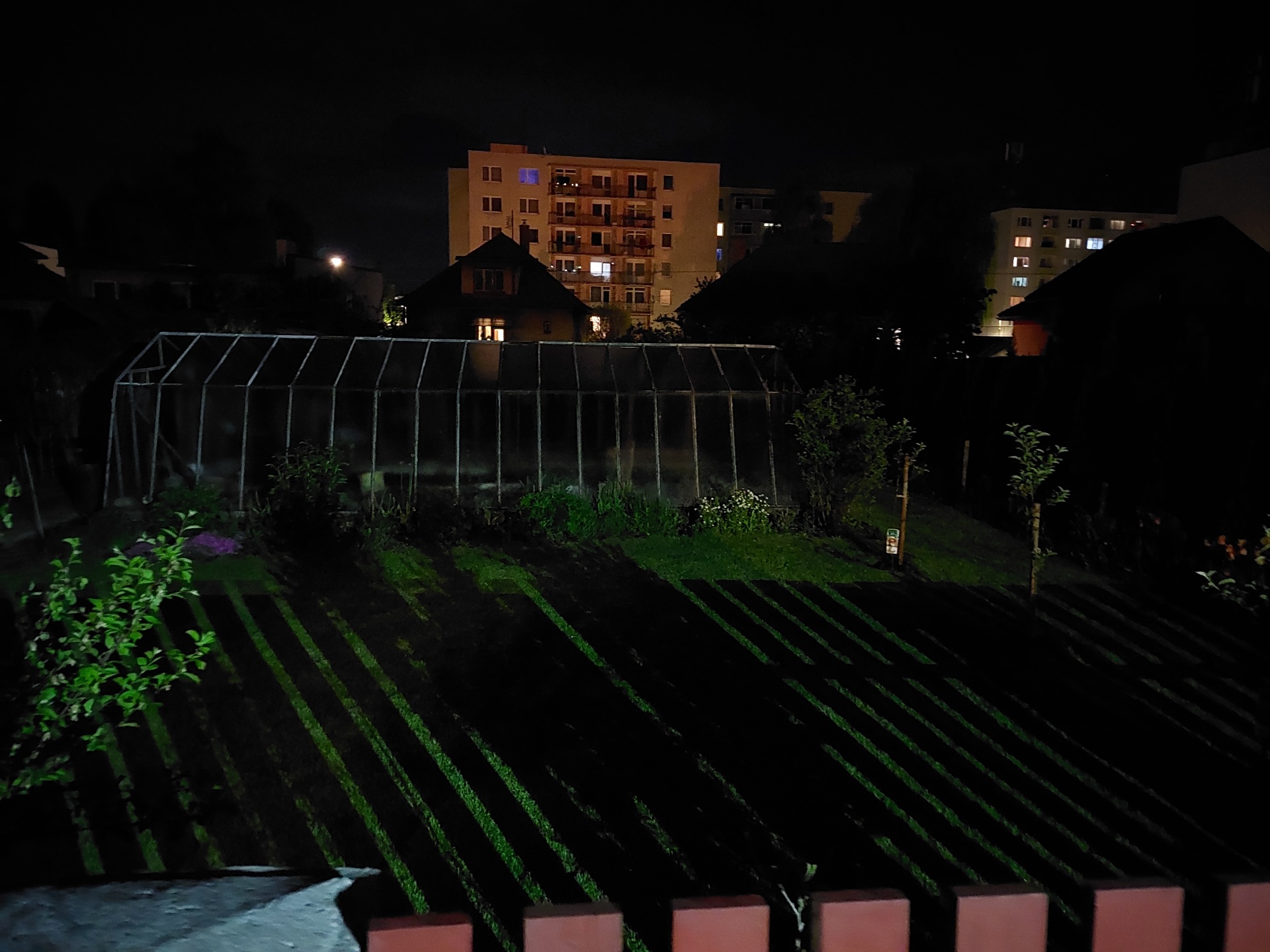 Na porovnanie menší model Galaxy A52 má rovnaký počet objektívov rovnako usporiadaných, avšak nemá teleobjektív a jeden z objektívov slúži len na určenie vzdialenosti pre rozostrenie pozadia. Hlavný fotoaparát má snímač s rozlíšením 64 MPx. Pokiaľ chcete za dobrého svetla zachytiť maximum detailov, môžete tento fotoaparát prepnúť do režimu maximálneho rozlíšenia. Implicitne tento fotoaparát využíva technológiu Tetra-binning, ktorá zlúči štyri 0.8㎛ pixely do jedného väčšieho 1.6 ㎛ pixelu. Rozlíšenie fotografií je teda 16 MPx. Dôvodom takéhoto zlúčenia je, že väčšie pixely majú štvornásobne väčšiu plochu a teda sú schopné zachytiť štvornásobne viac svetla. To spolu s objektívom o svetelnosti f/1,8 s optickou stabilizáciou obrazu umožňuje získať oveľa lepšie zábery pri večernom, či nočnom fotení, alebo pri fotení v miestnosti, kde je menej svetla. Pri slabšom svetle odporúčam aktivovať nočný režim, ktorý počas troch až štyroch sekúnd zachytí 12 samostatných záberov, ktoré následne skombinuje do výsledného záberu, ktorý má spravidla prekvapivo dobrú dynamiku jasov a farieb. Celkom dobre to funguje aj v dynamických scénach s pohybujúcimi sa objektami.