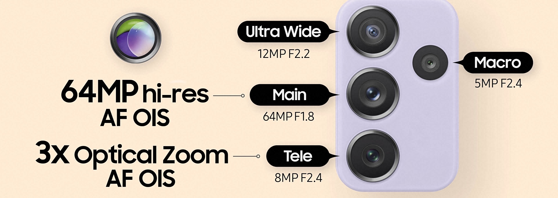 Technické údaje: Procesor: Osemjadrový Qualcomm Snapdragon720G s frekvenciou jadier (2 x 2,3 GHz Kryo 465 Gold + 6 x 1,8 GHz Kryo 465 Silver), 8 nm technológia; GPU Adreno 618, pamäť: 6 GB RAM, 128 GB úložný priestor + slot na microSDXC kartu; displej: 6,7 palcový Super AMOLED, rozlíšenie 1080 x 2400 px, 394 PPI, 90 Hz 800 nit; Fotoaparát: zadný hlavný širokouhlý (26 mm): 64 MPx, 0.8 µm f/1.8 OIS; ultra širokouhlý (123˚) 12 MPx 1.12µm, f/2.2; teleobjektív 8 MPx, 1 µm f/2,4 ;makro objektív: 5 MPx, f/2.4;; predný fotoaparát: 32 MPx, 0.8 µm, f/2.2; Konektivita: WiFi 802-11 ac, bluetooth 5.0, A2DP, LE; NFC; Operačný systém Android 11 s nadstavbou OneUI 3.1; Batéria: 5 000 mAh; Rozmery: 165 x 77,4 x 8,4 mm, hmotnosť 203 g. Cena: 448 eur
