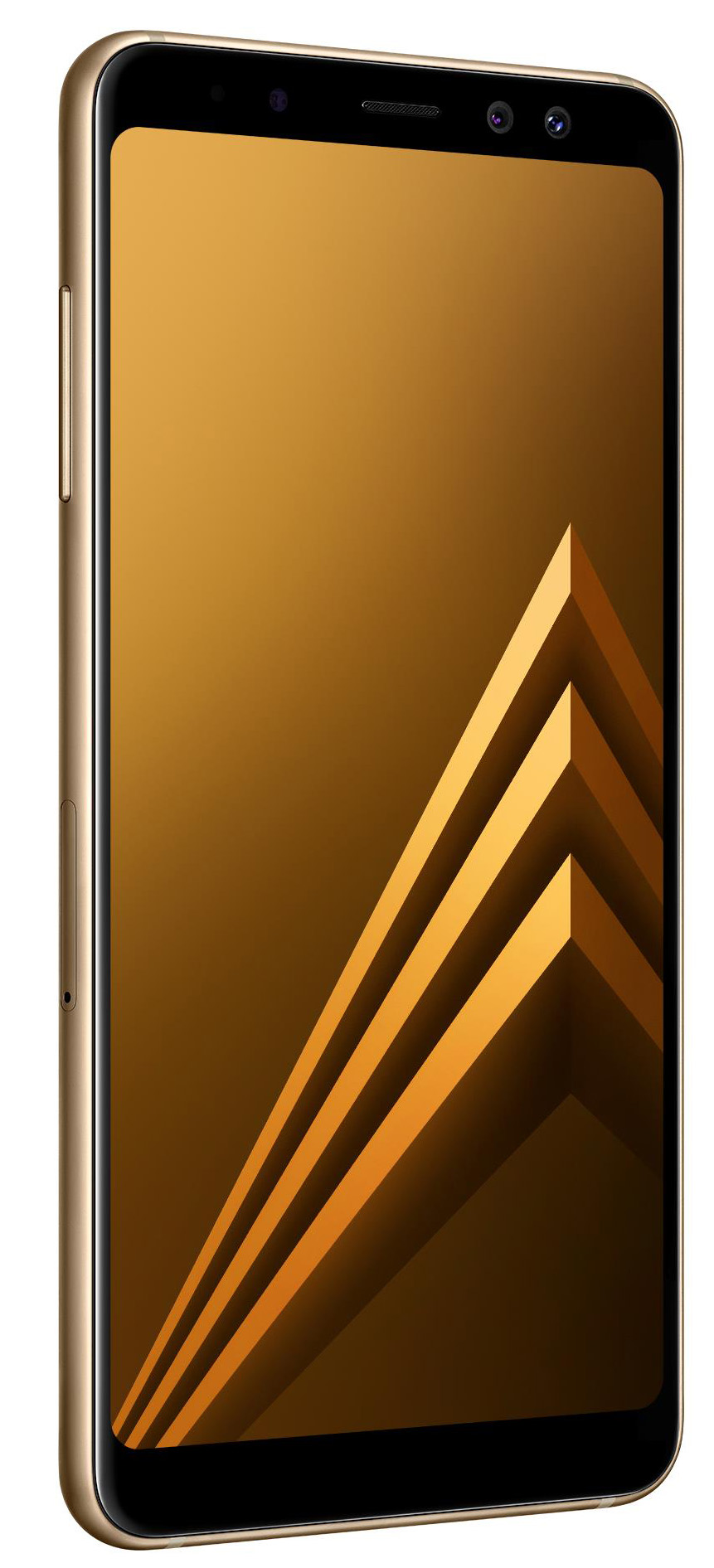 Samsung vo svojom modeli Galaxy A8 (2018), ktorý je následníkom A5 (2017), stavil na duálny selfie fotoaparát a extrémne širokouhlý displej s uhlopriečkou 5,6 palca a s trochu netradičným pomerom strán 18,5:9, teda ešte širším, než je nastupujúci trend 18:9 (2:1). Technológia Super AMOLED poskytuje vynikajúci obraz v celom rozsahu prakticky použiteľných pozorovacích uhlov. Rozlíšenie 1080 × 2220 pixelov je de facto „roztiahnuté“ full HD. V tejto triede je viac než dostatočné, takže plynulé zobrazovanie pri ňom zvládne aj grafický čip, ktorý výkonom nepatrí k úplnej špičke. Dizajnéri si nerobili starosti s bočnými okrajmi pozdĺž dlhších strán. Približne 2 mm síce marketingovým špecialistom neumožnilo použiť prívlastok infinity, ale spomínané milimetre zabraňujú nechceným dotykom pri uchopení a držaní. AMOLED umožňuje rozsvecovať iba vybrané pixely, takže A8 má aj funkciu Always On Display, ktorá aj v pohotovostnom režime používateľa informuje o aktuálnom dátume, čase, upozorneniach či úrovni nabitia batérie.