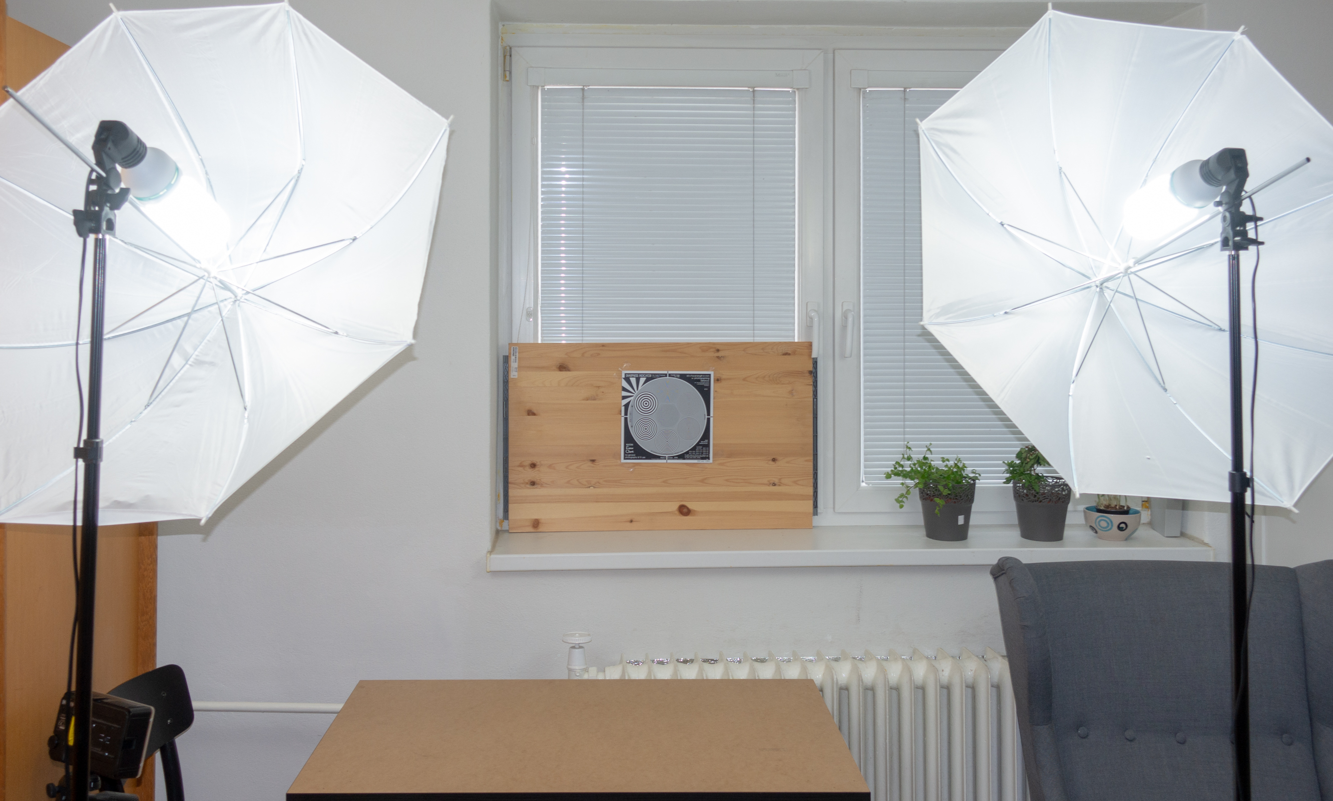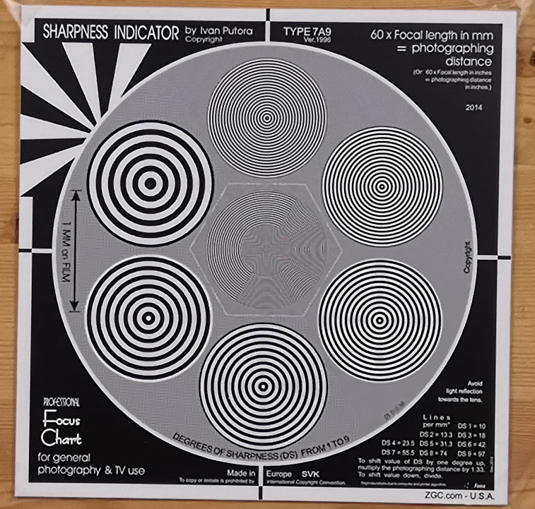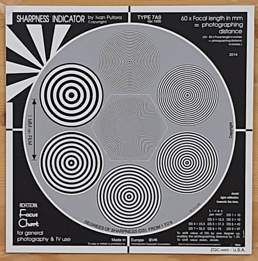 Teraz sa presuniem do provizórneho ateliéru a otestujem ostrosť sústavy objektív - snímač na Putorovom testovacom obrazci so sústrednými kruhmi. Smartfón je od testovacieho obrazca vzdialený 60 násobok ohniskovej vzdialenosti, pochopiteľne prepočítané na full frame. Pri tomto teste je dôležité čo najrovnomernejšie osvetlenie. Smartfón je pri fotení v statíve.
