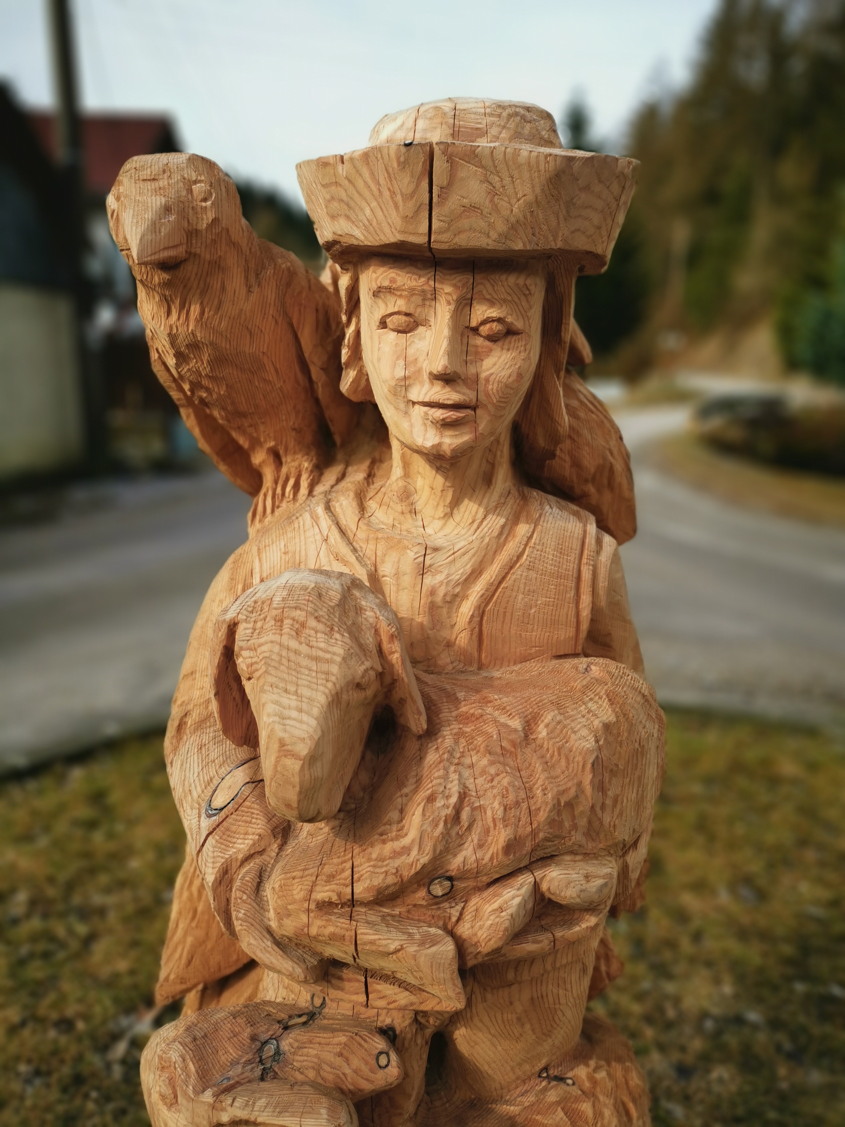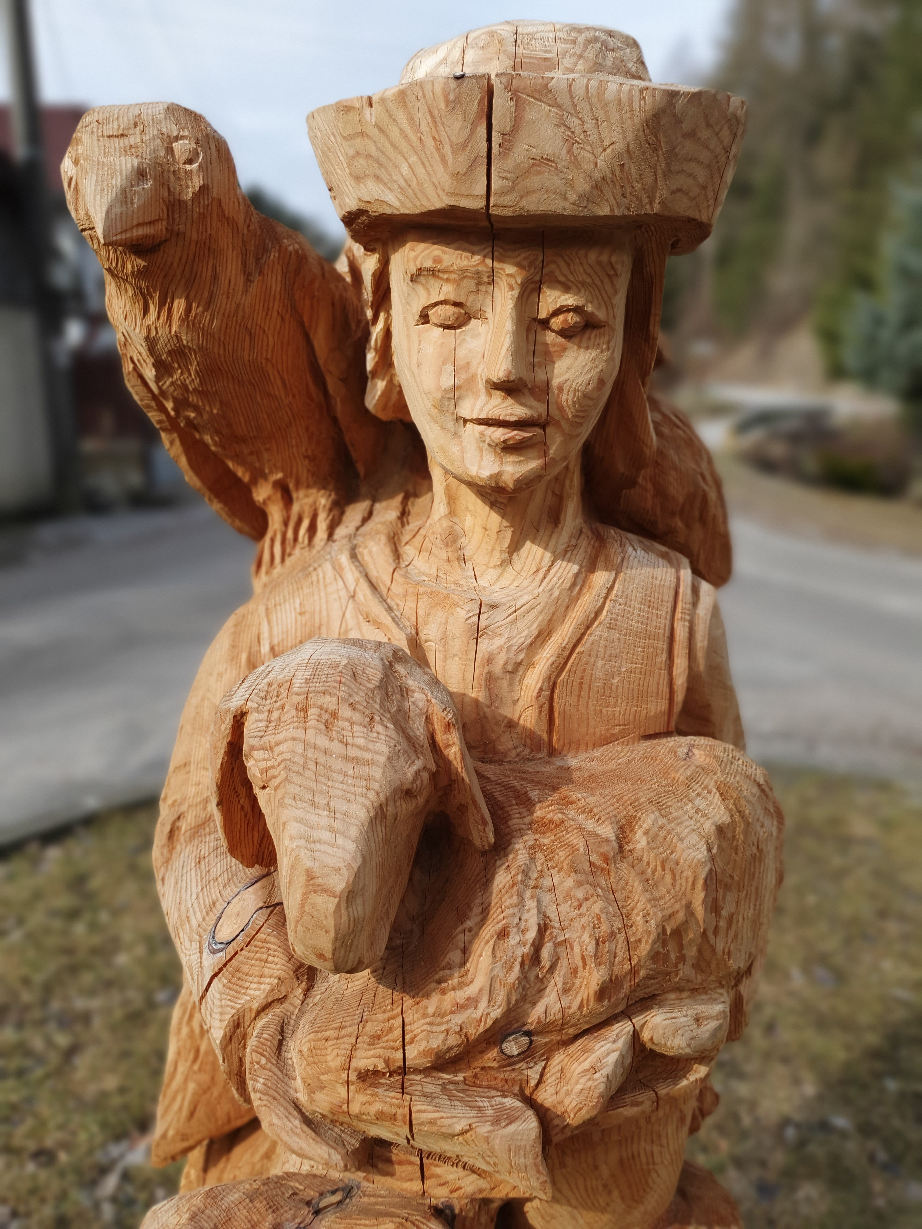 Test rozostrenia na (GDPR kompatibilnných) objektoch pripomínajúcich ľudskú tvár. Najskôr drevená socha