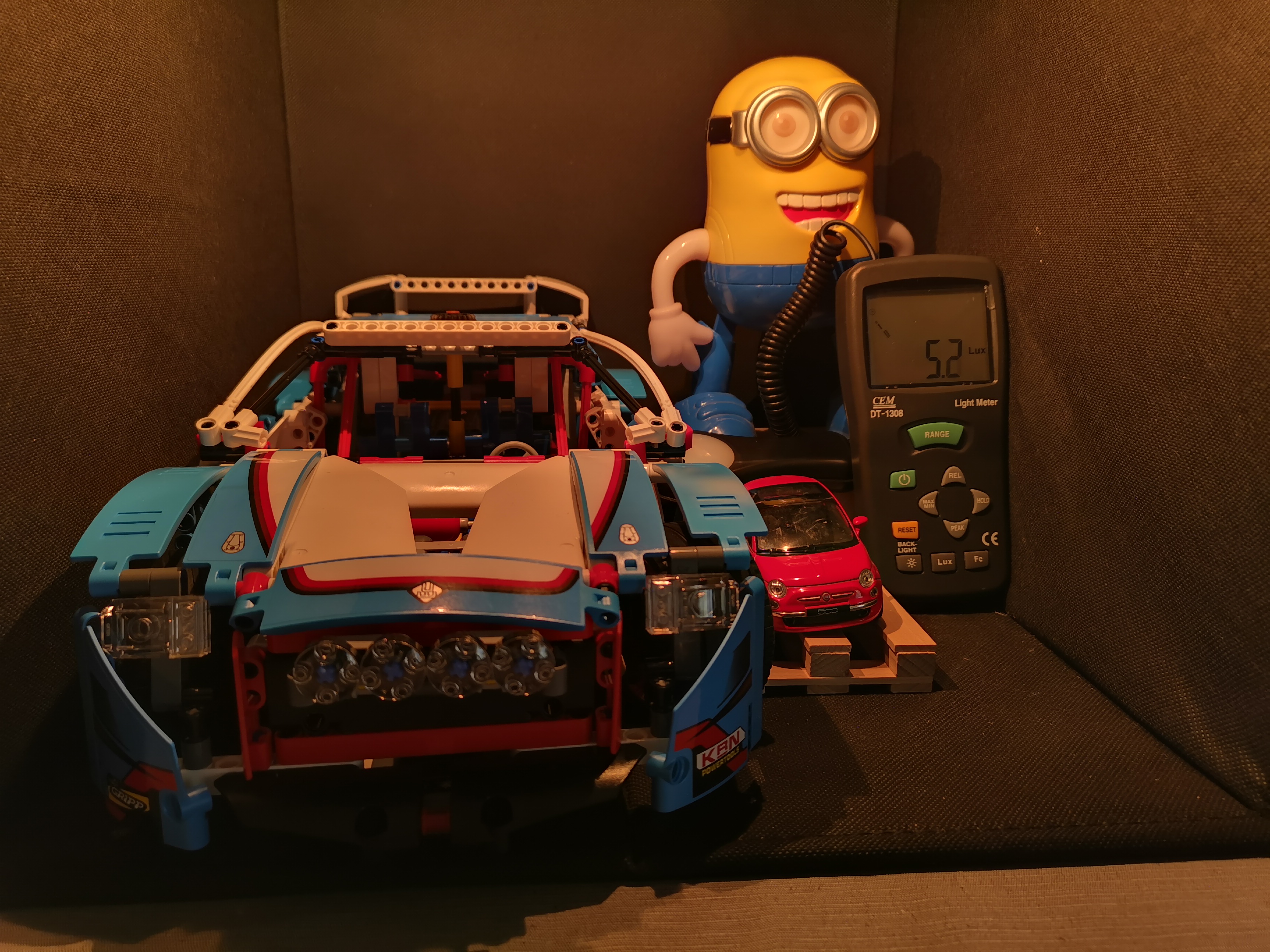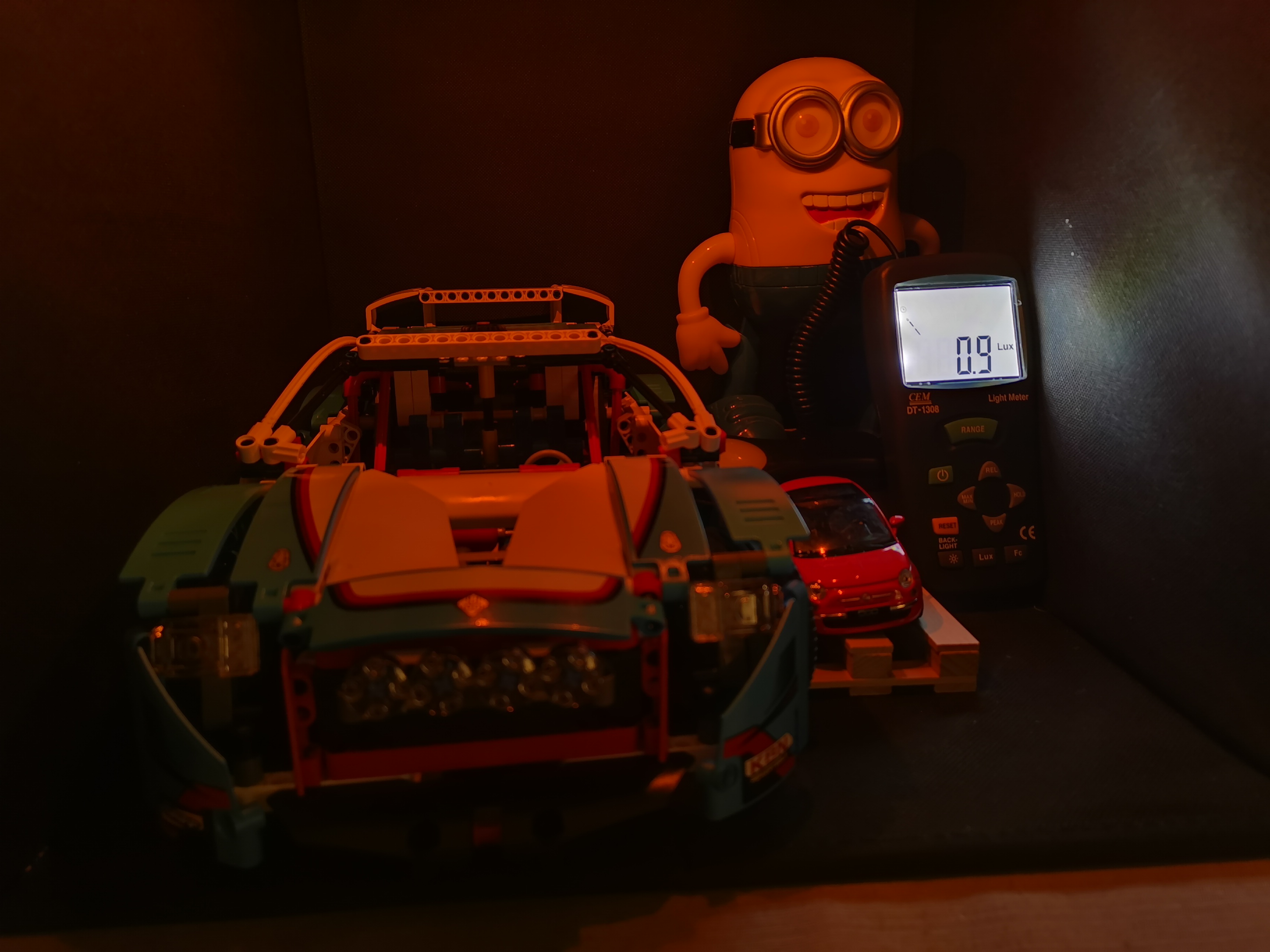 Fotenie v zlých svetelných podmienkach som testoval v kontrolovanom prostredí tmavej komory osvetlenej klasickými žiarovkami napájanými jednosmerným prúdom z laboratórneho regulovaného zdroja, aby som eliminoval akúkoľvek možnosť blikania. Telefón bol pri tomto teste na statíve. Zábery pri extrémne nízkom osvetlení, začínam od 5 luxov.
