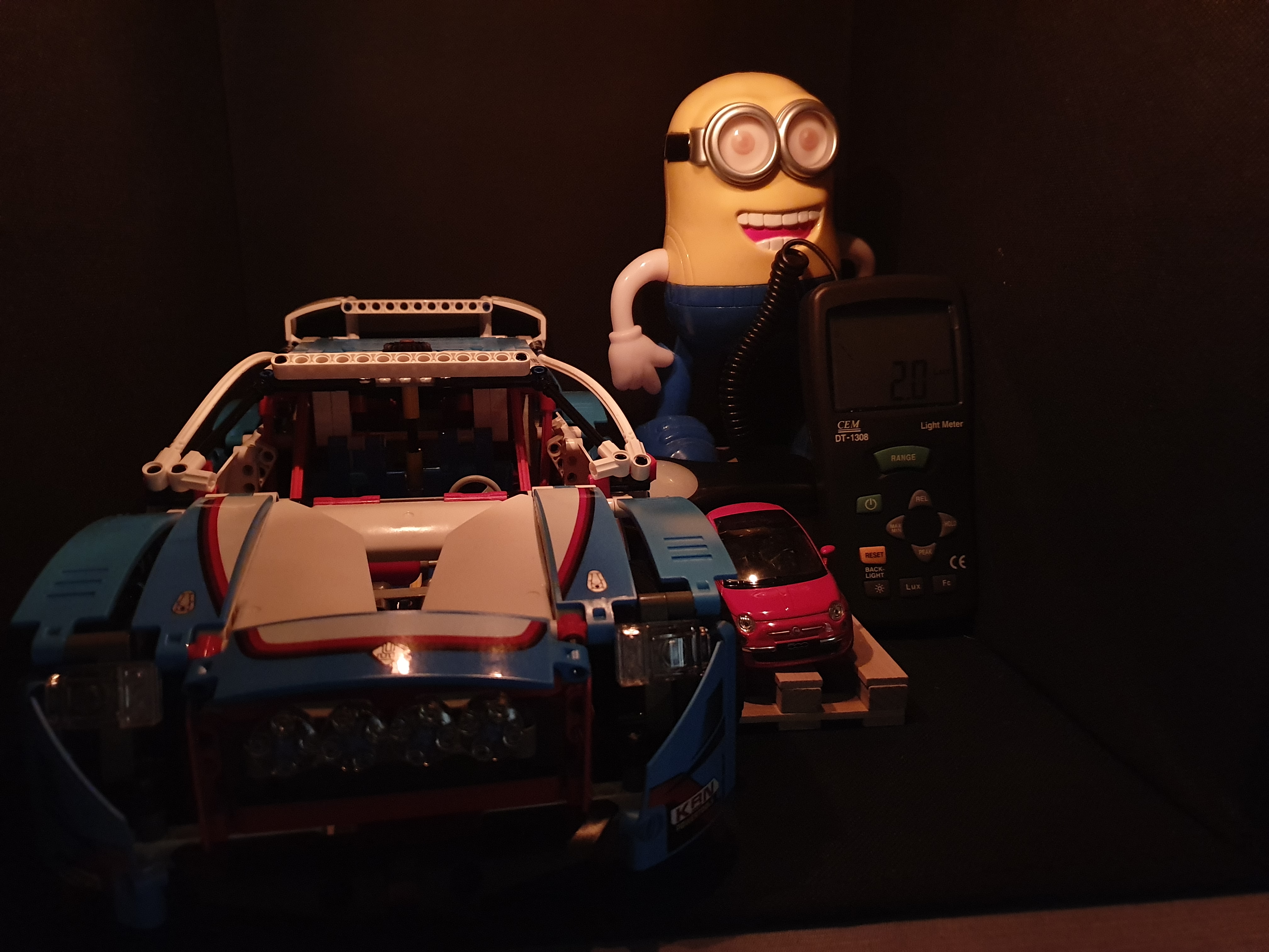 Pri úrovni 1 lux otestujem aj dynamiku záberu, zosvietil som podsvietenie luxmetra