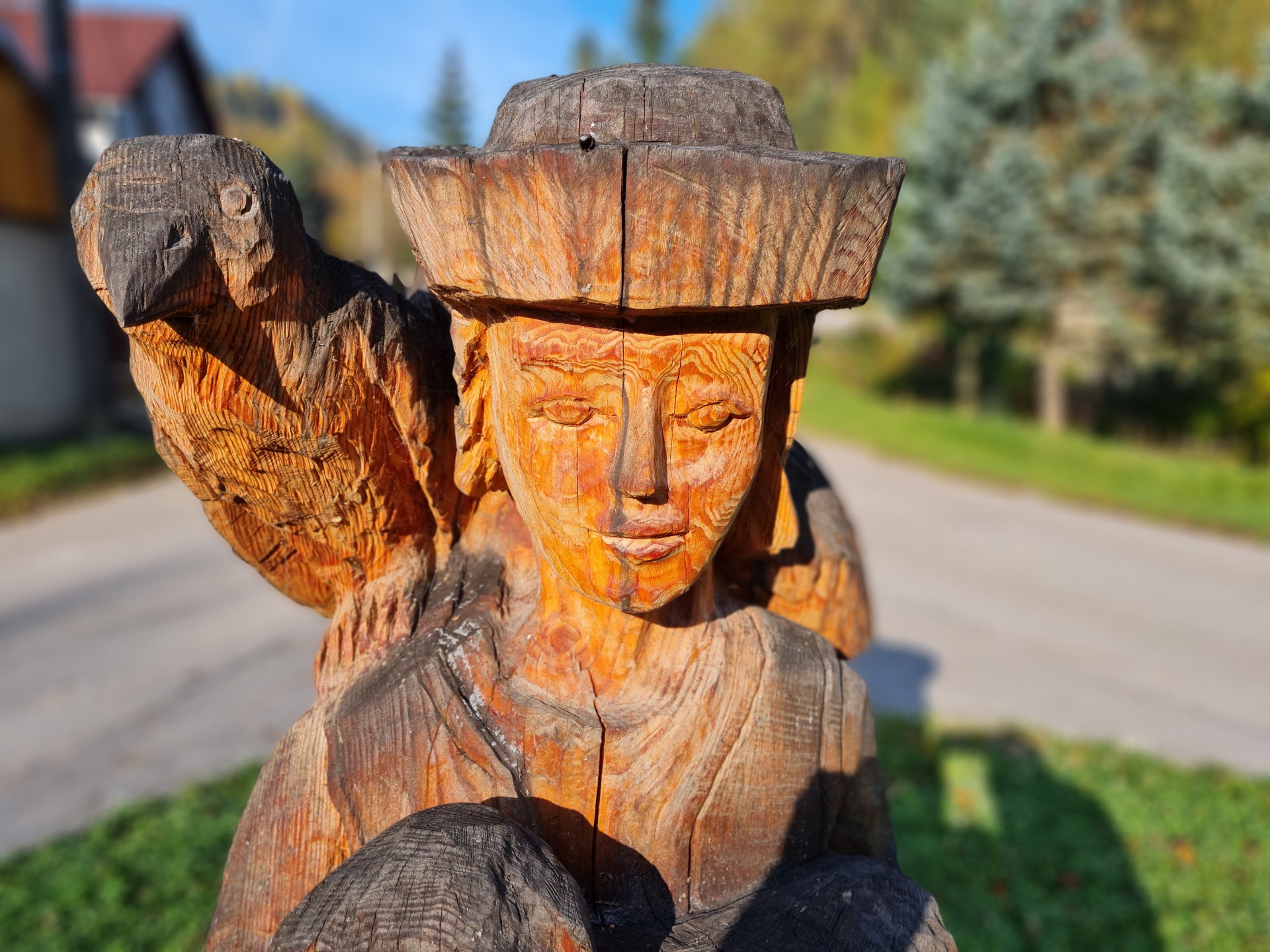Vľavo záber z blízka hlavným objkektívom a vprevo záber detailu teleobjektívom