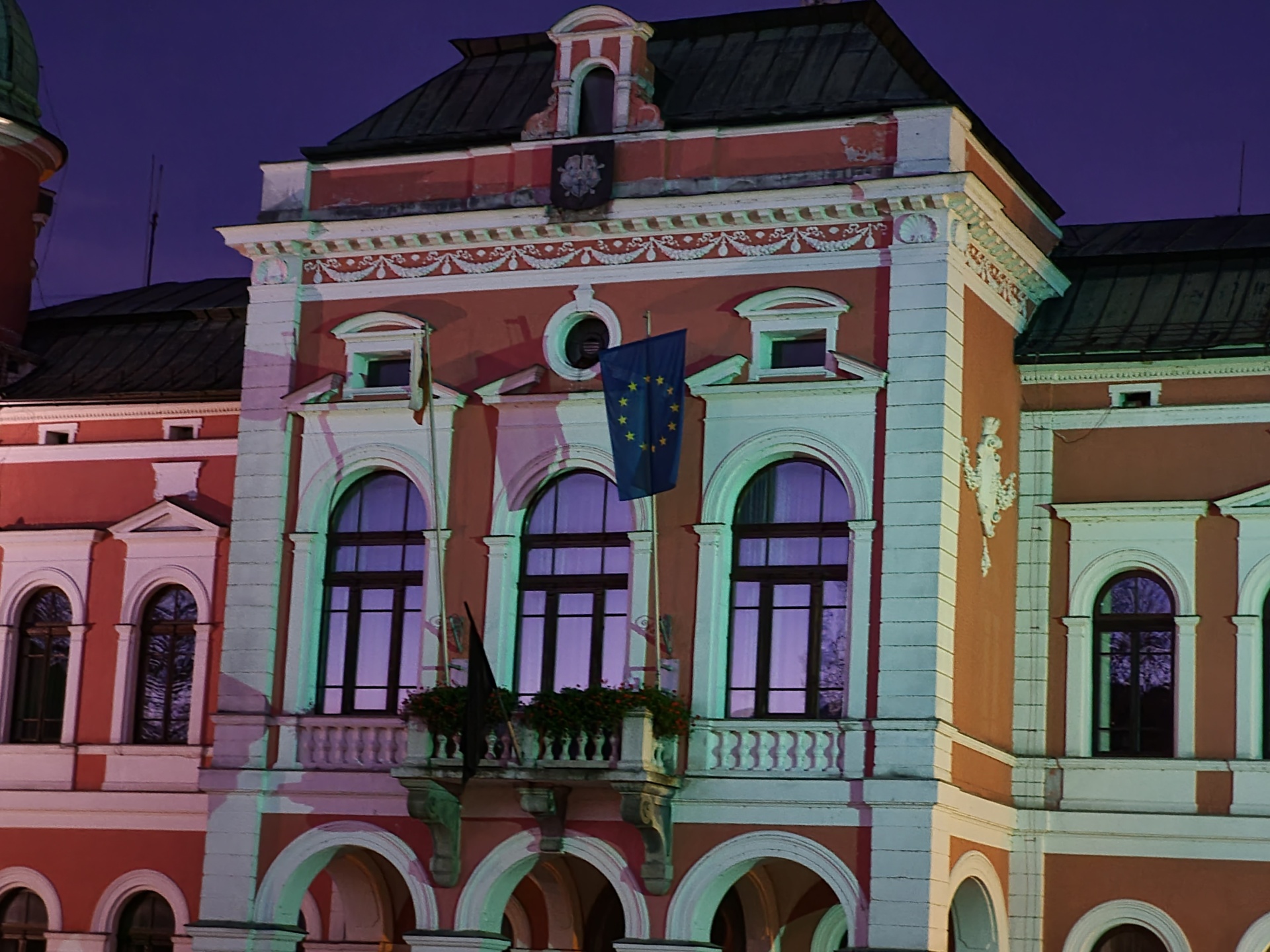 Nočný záber hlavným (širokouhlým objektívom) a teleobjektívom