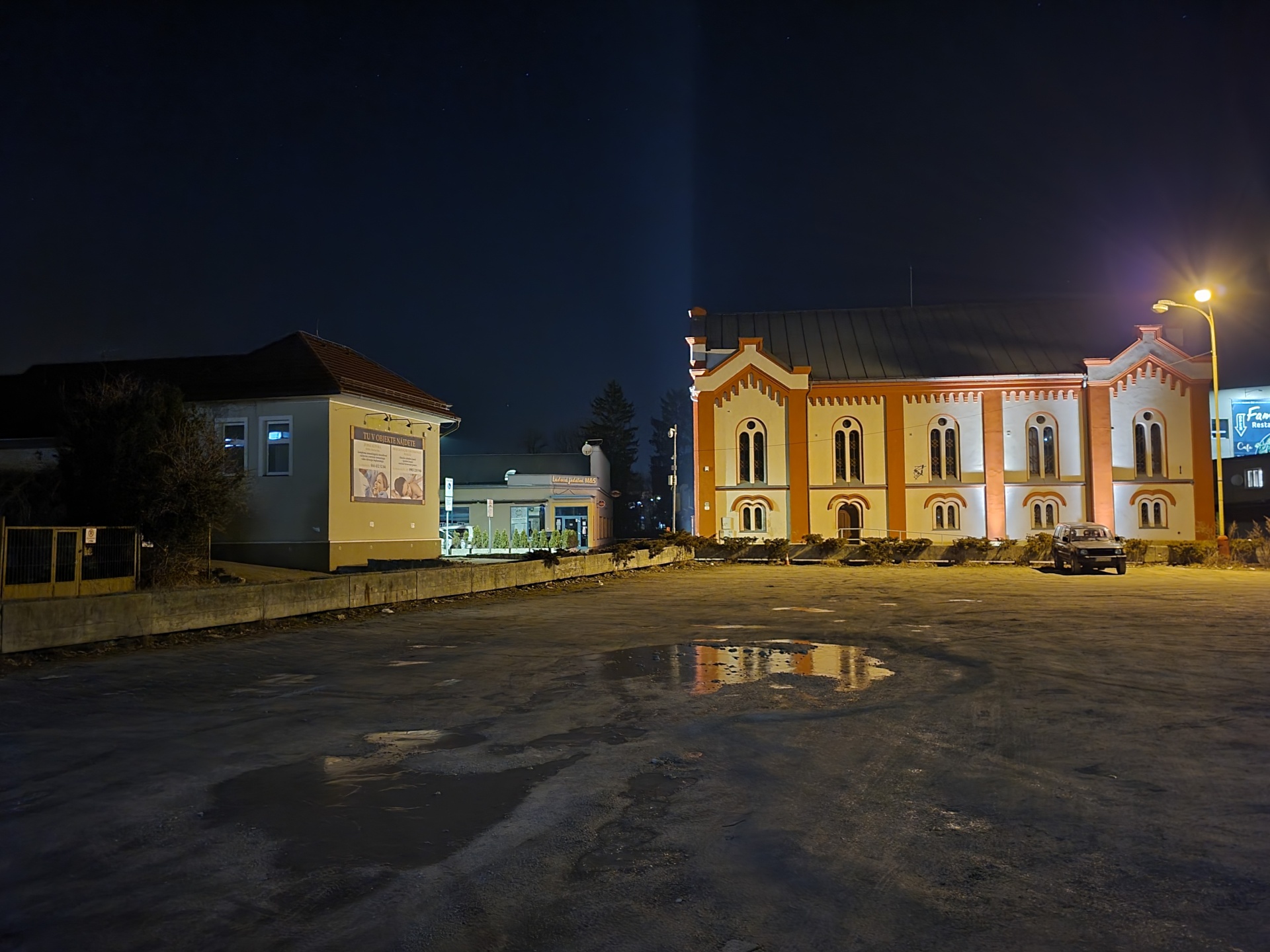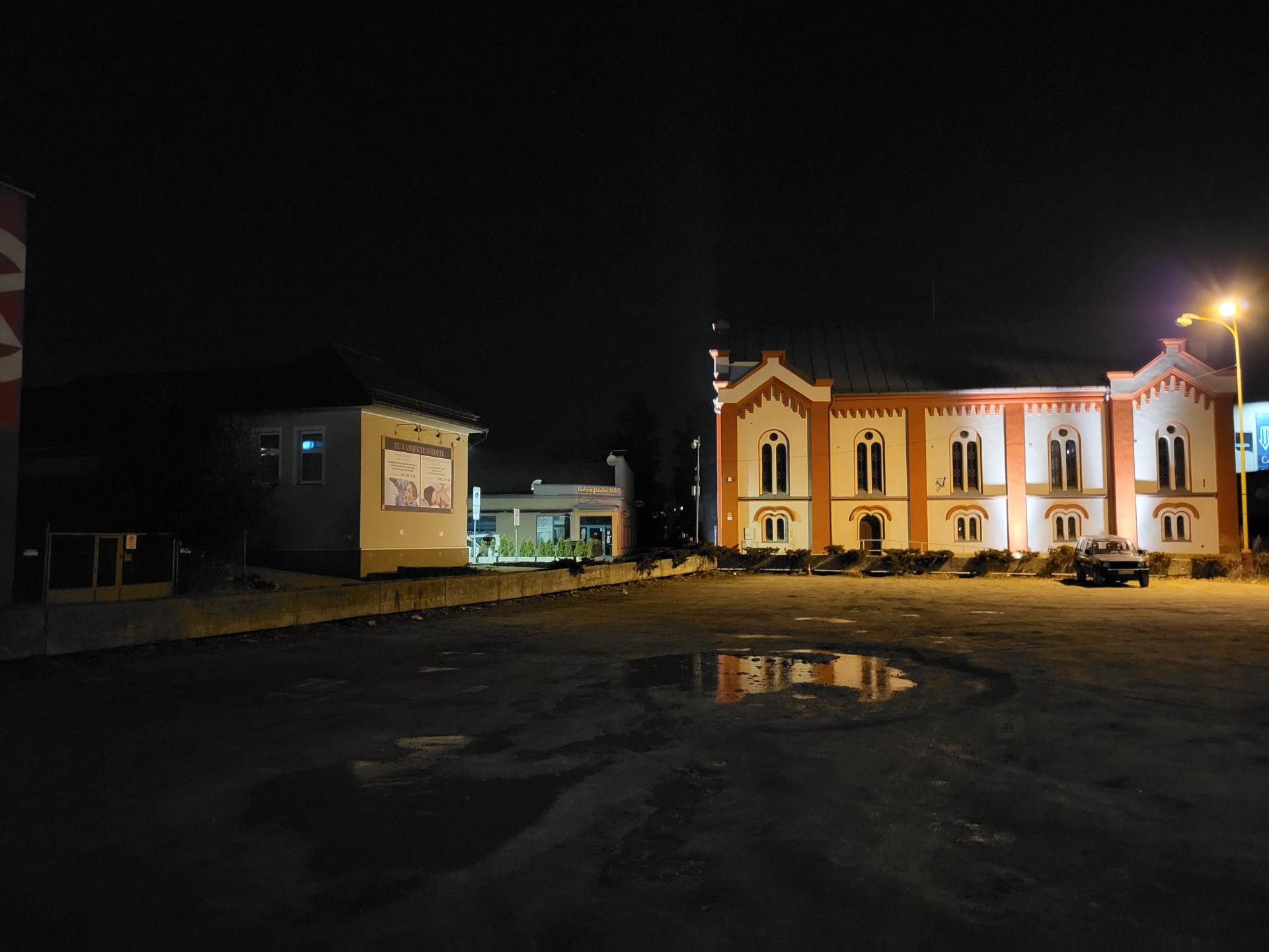 Večerný záber hlavným fotoaparátom, vľavo normálnu, vpravo nočný režim