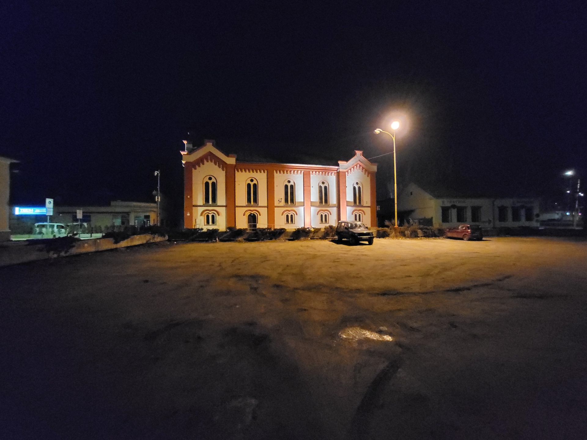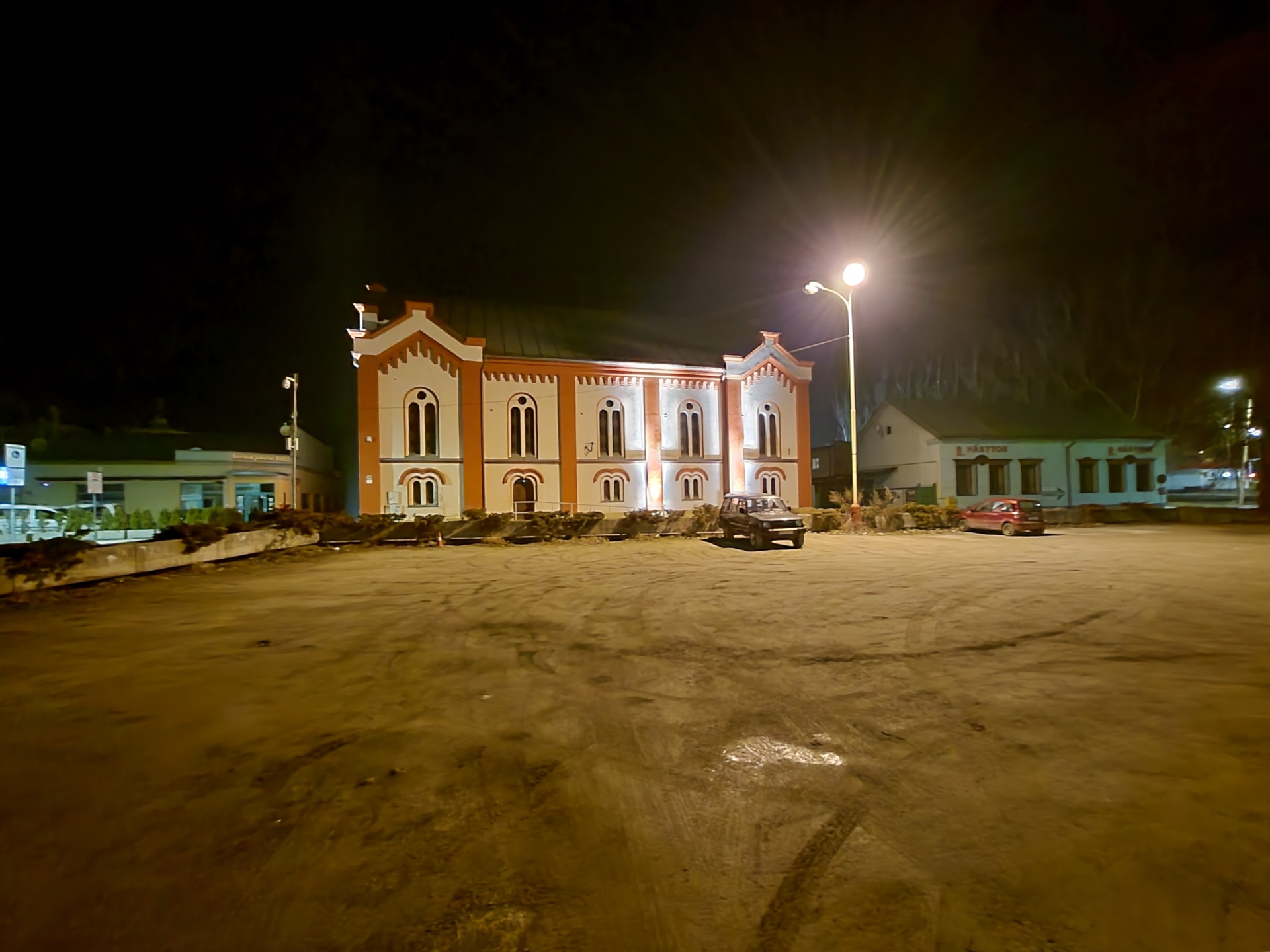 Večerný záber ultraširokouhlým objektívom, vľavo normálnu, vpravo nočný režim