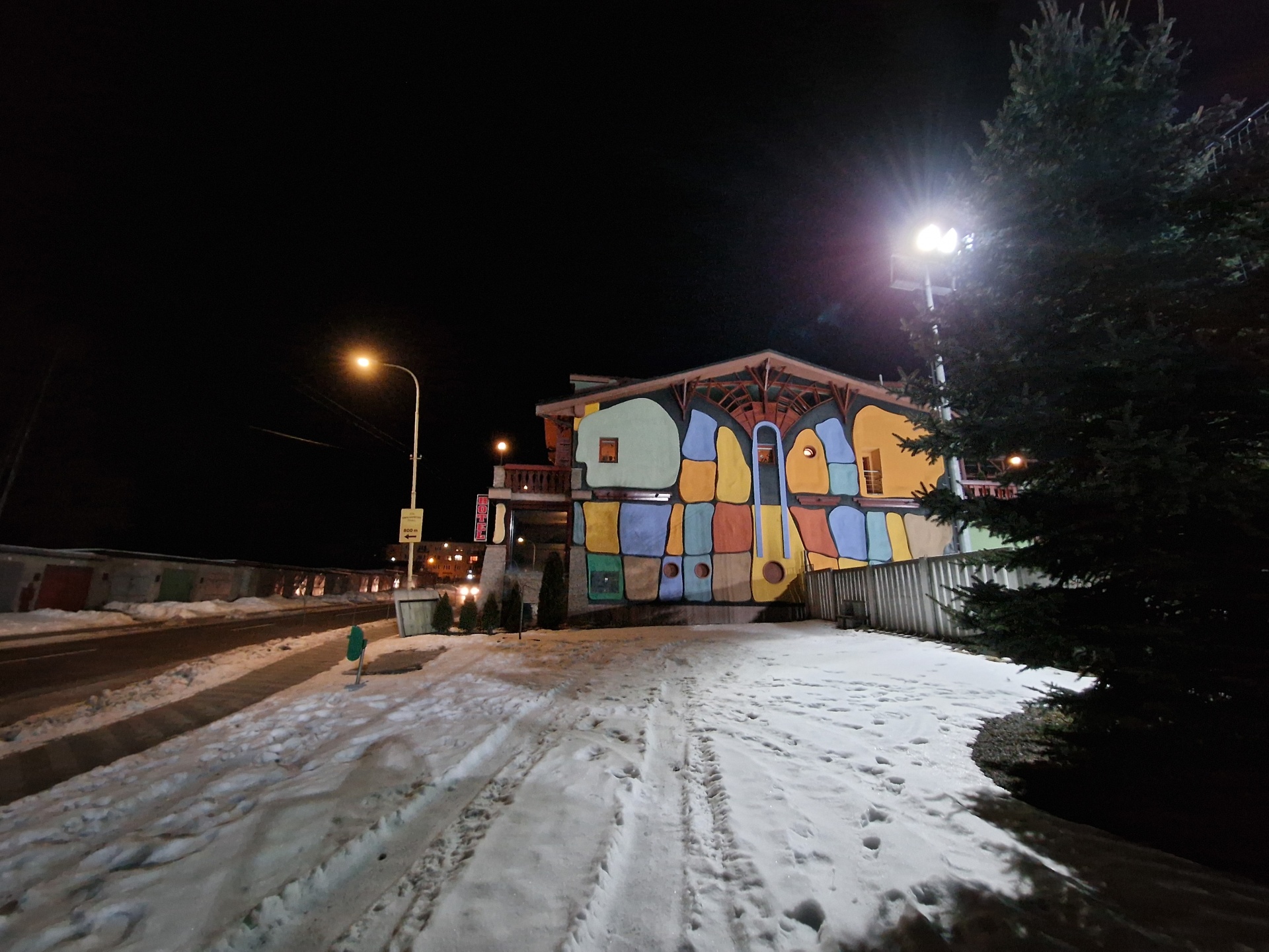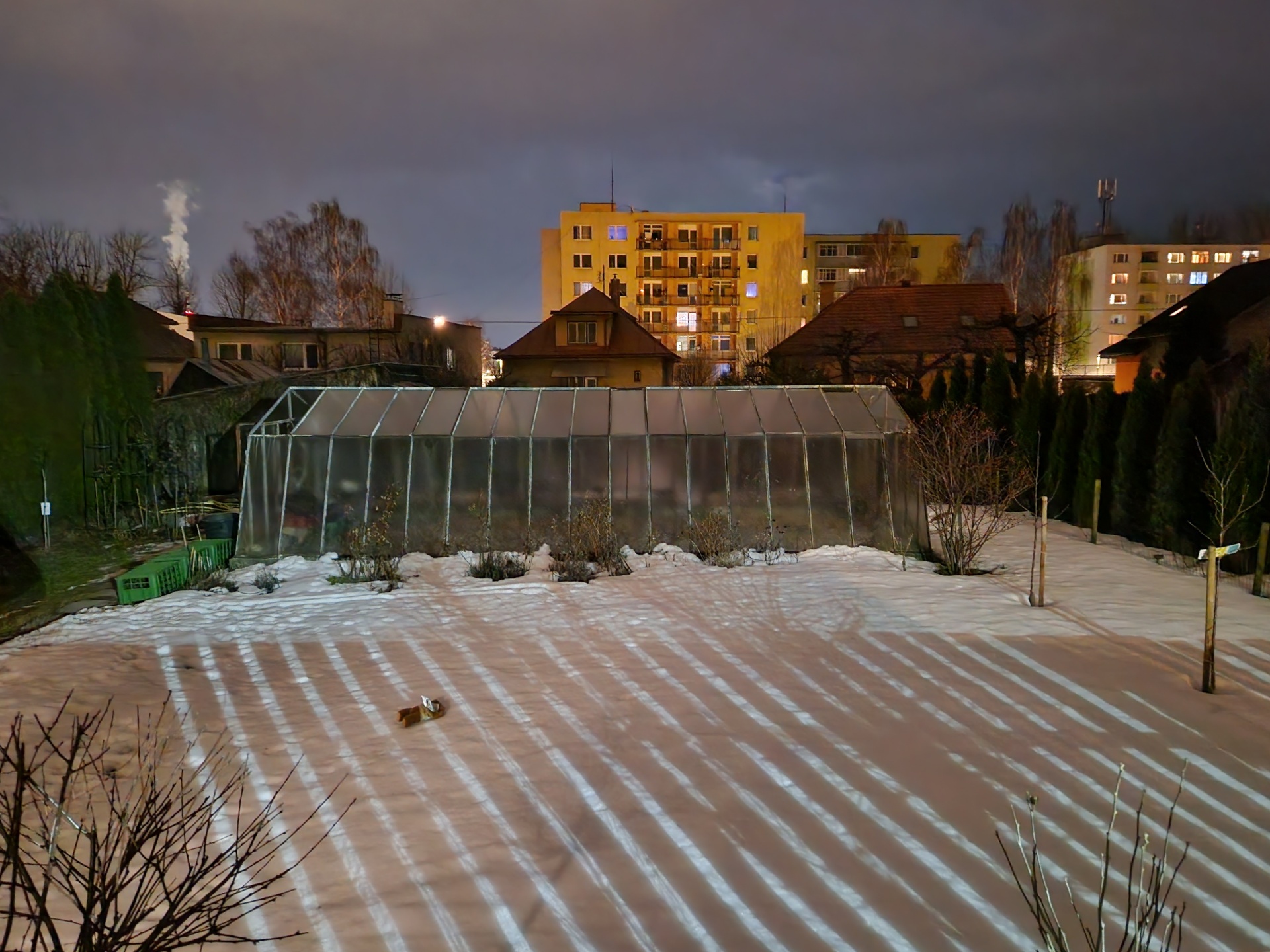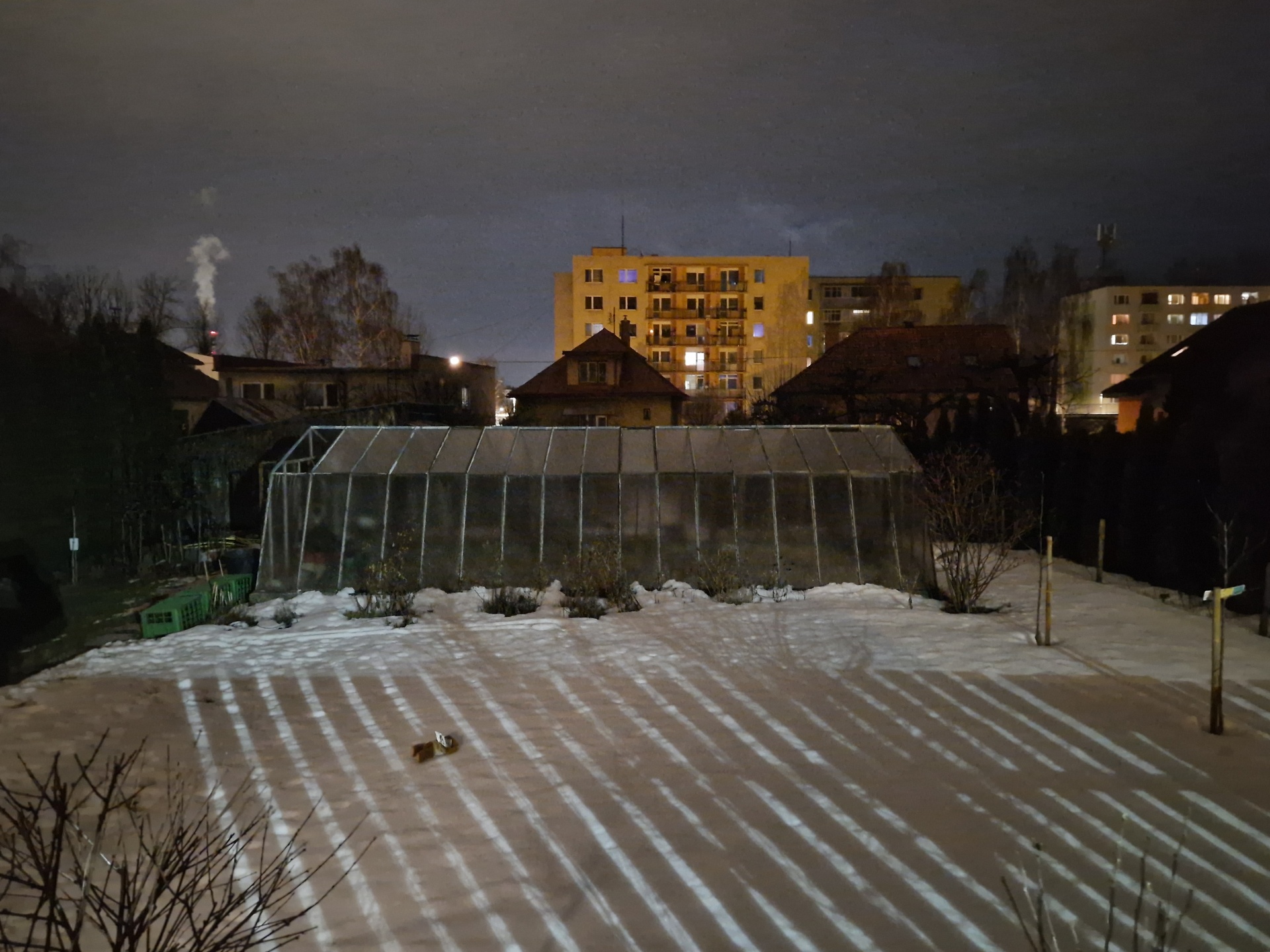 Pri fotení v horších svetelných podmienkach expozičná automatika uprednostňuje kratšiu expozičnú dobu a to aj za cenu vyššieho ISO. Snaží sa však neprekročiť hodnotu ISO 4000, pretože pri tejto hodnote je farebný šum len nepatrný. Je to dobrá taktika, pretože umelá inteligencia síce dokáže eliminovať chvenie rúk pri dlhšej expozícii, avšak to umožňuje ostré zábery len pre statické scény. Akonáhle je v zábere pohyb, riešením je jedine kratší expozičný čas. Podľa mojich skúseností odporúčam pri fotení večer a v noci zapnúť nočný režim. Zábery budú mať väčšiu jasovú aj farebnú dynamiku.