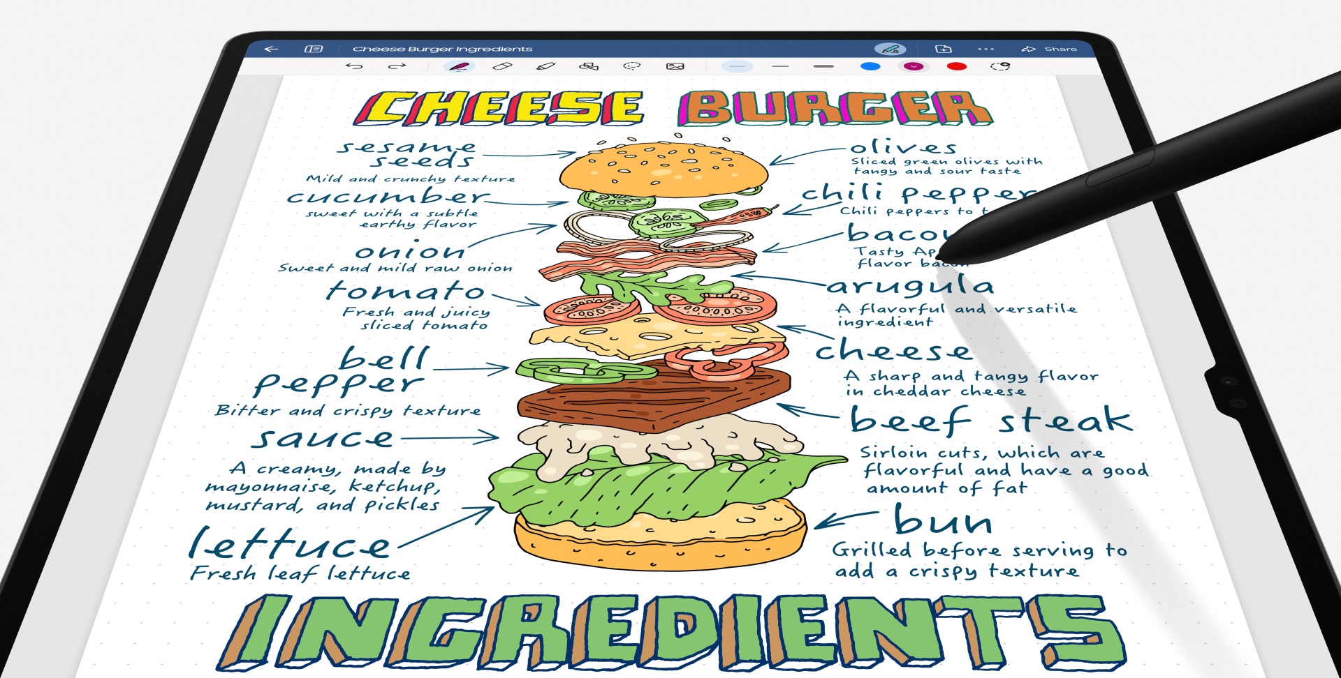 Napriek niekoľkým desaťročiam využívania zariadení s klávesnicami a dotykovými displejmi je pre mnohých stále písanie rukou najintuitívnejšie na robenie si poznámok, nehovoriac o kreslení. Tablet som takto využil na konferencii, kde som si na kolenách napísal niekoľko strán poznámok. Bolo to pohodlnejšie, ako keby som použil notebook. Profesionálni grafici či ilustrátori si môžu dokúpiť zlepšenú verziu pera S Pen Creator Edition. Tá má zdrsnený povrch, takže sa pohodlnejšie drží a možno ju naklopiť do strmšieho uhla. K dispozícii sú aj dva druhy hrotov, tvrdý na kreslenie a mäkší na písanie.