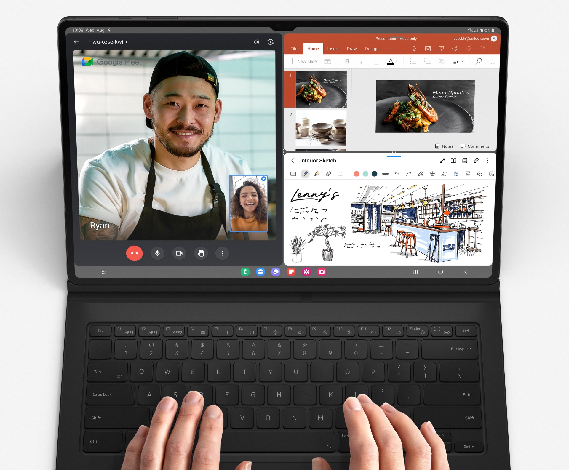 Veľký displej s rozlíšením 1752 × 2800 pixelov poskytuje nepomerne viac priestoru než displej smartfónu s podobným rozlíšením. Trik je v takzvanej mierke. Keby sa texty na 6-palcovom displeji zobrazovali tak, aby naplno využili rozlíšenie, boli by veľmi malé a zle čitateľné, zatiaľ čo na 10-palcovom tablete sa budú dať pohodlne čítať. Vývojári aplikácií s tým počítajú a zobrazovaný obsah dynamicky prispôsobujú nielen rozlíšeniu, ale aj veľkosti obrazovky. Funkcia Multi Window umožňuje naraz zobraziť až tri aplikácie v úhľadne usporiadaných oknách, pričom zobrazenie v každom okne sa bude podobať tomu, ako by sa aplikácia zobrazila na smartfóne. V režime Pop-Up View sa zase aplikácie zobrazia ako plávajúce okná, pod ktorými stále vidieť štandardnú pracovnú plochu.