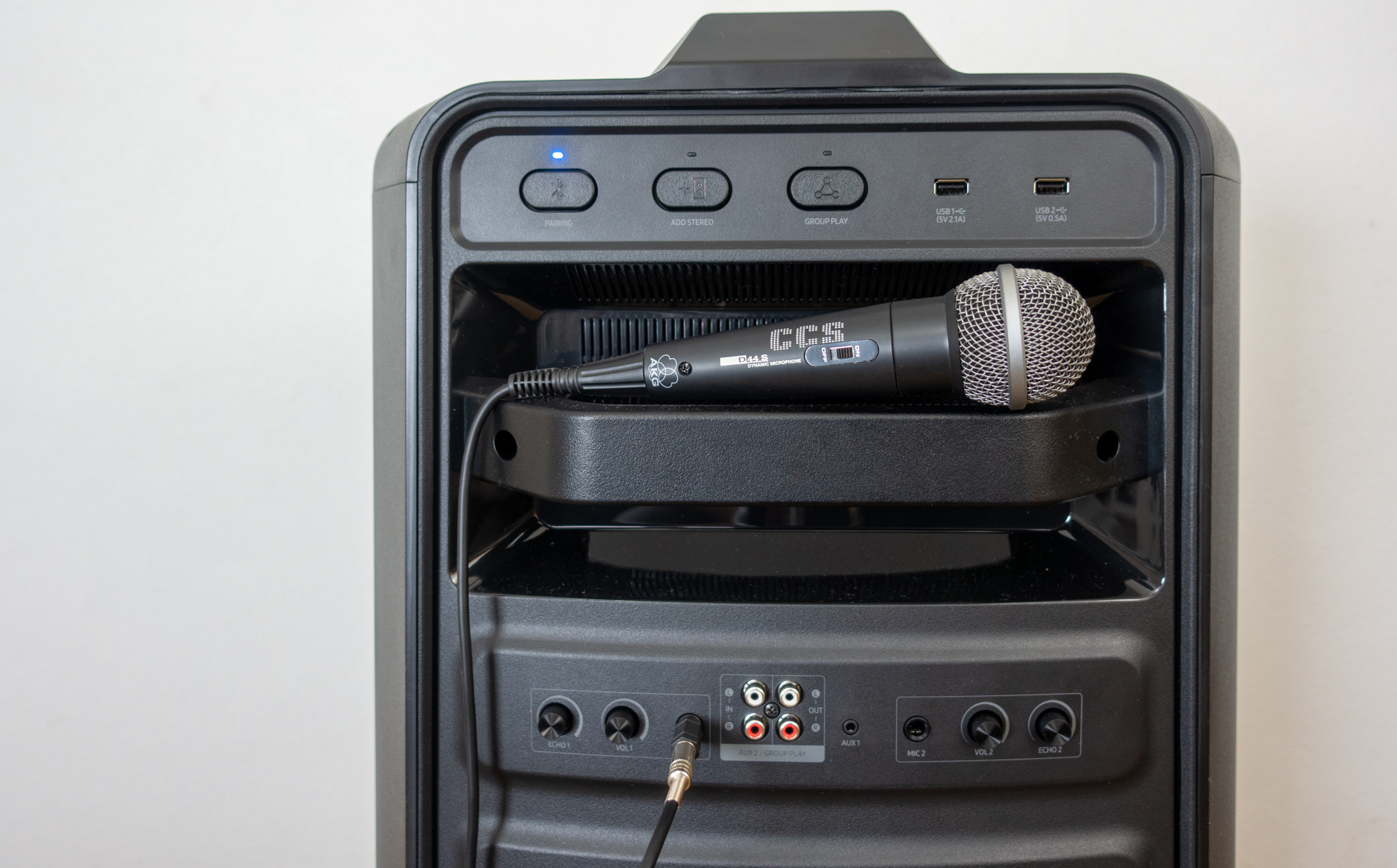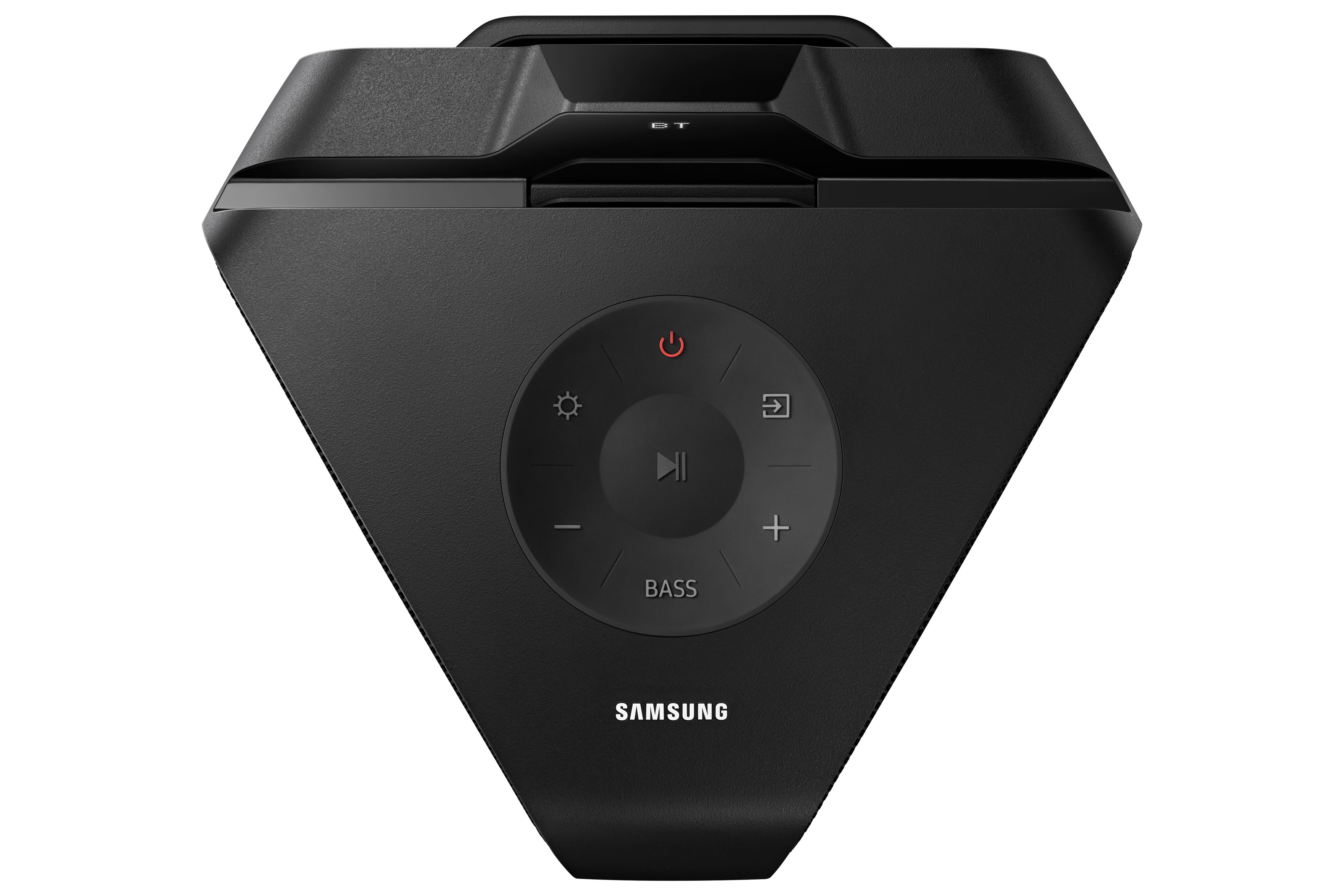 Nový párty reproduktor od Samsungu je k dispozícii v dvoch variantoch – T50 a T70. Na testovanie som mal väčší a výkonnejší model T70. Dizajnom aj parametram %i je predurčený na ozvučenie rôznych udalostí, ako sú párty v klubovni, prípadne aj väčšej sále, záhradné párty, prípadne na hudobný sprievod pri zumbe, aerobiku či iných fitnes aktivitách. Napriek pomerne veľkým rozmerom a hmotnosti výrobca pamätal na to, že reproduktor treba preniesť z auta na miesto určenia. V zadnej časti sú dve robustné rukoväti, takže dvaja ľudia reproduktor v pohode prenesú.